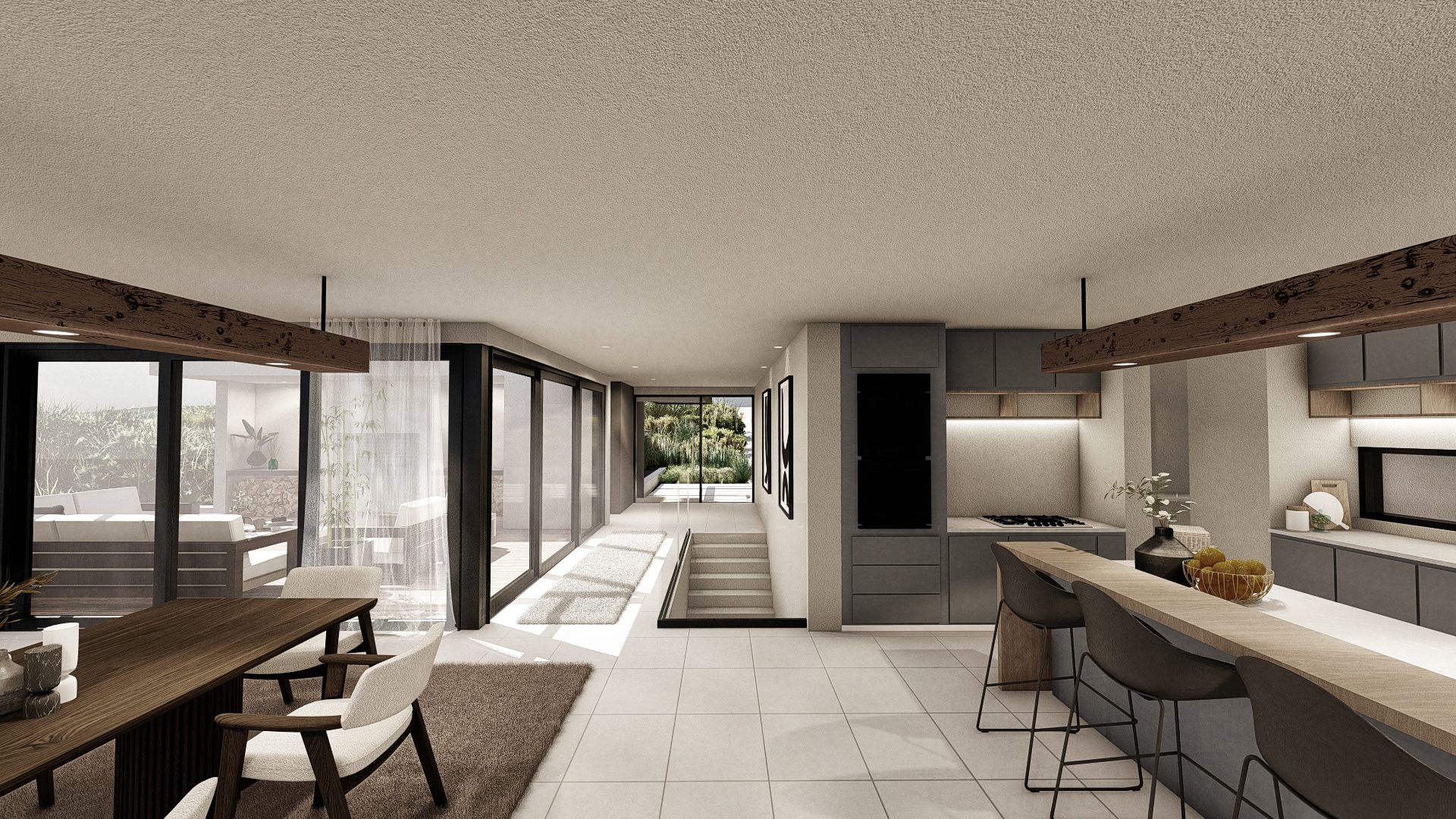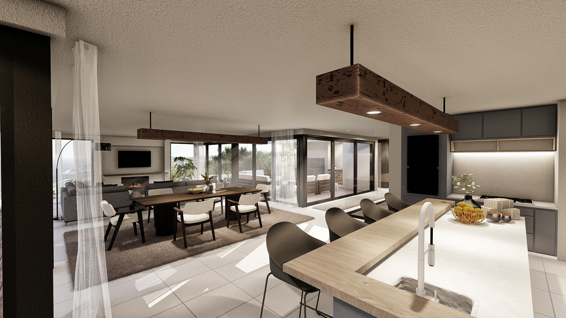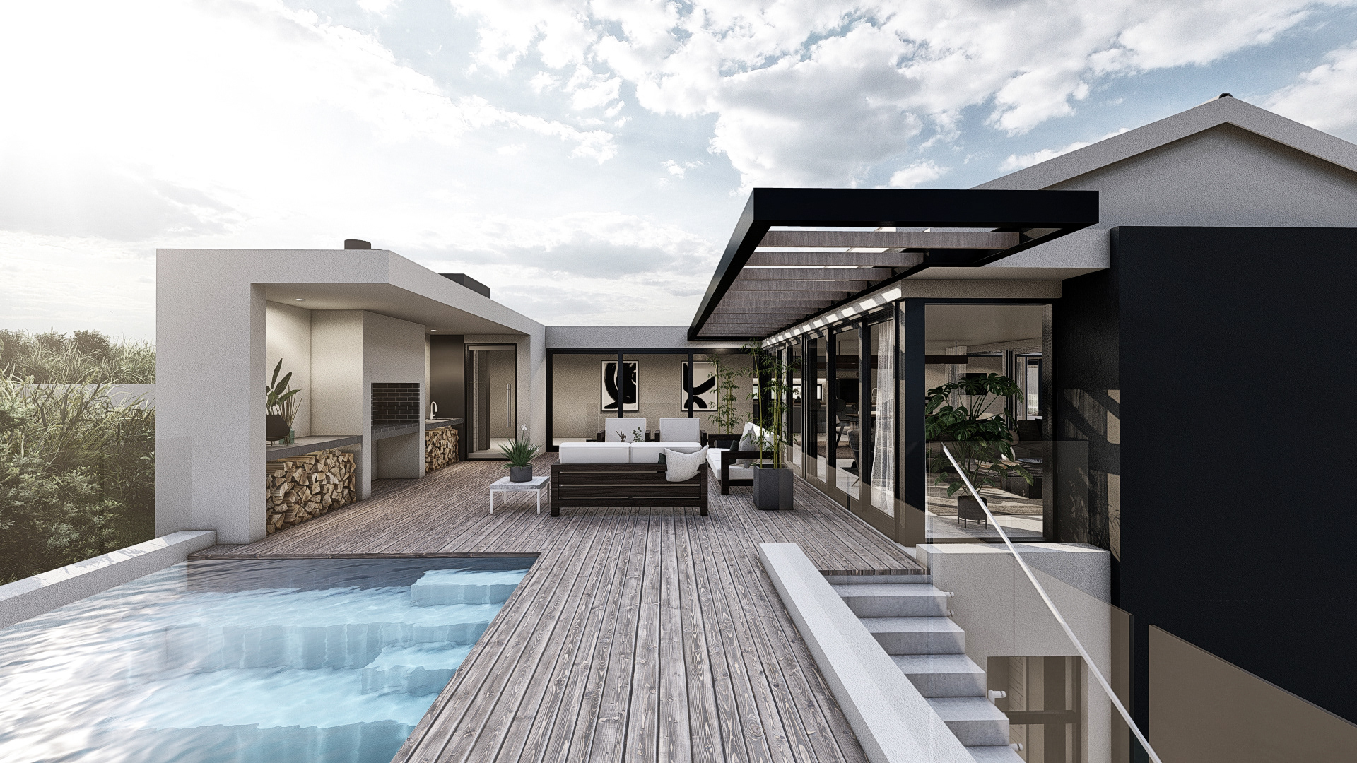 This classic-contemporary inspired house is all about entertainment spaces and private, comfortable bedrooms. The design makes use of views in various directions, bringing the vistas into the house.