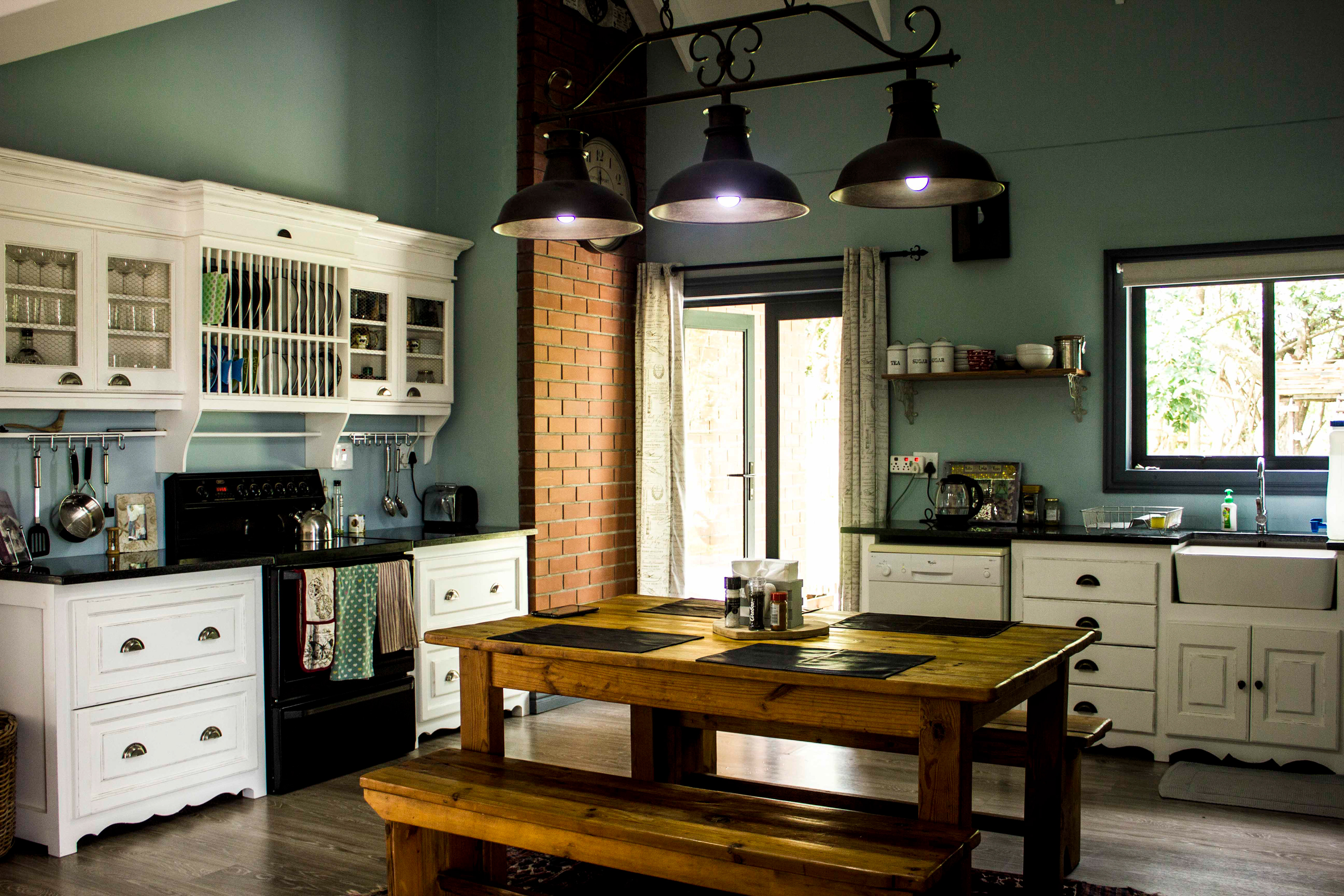 This design was farmhouse-inspired, with polished screed flooring, gable walls and classic interior finishes.