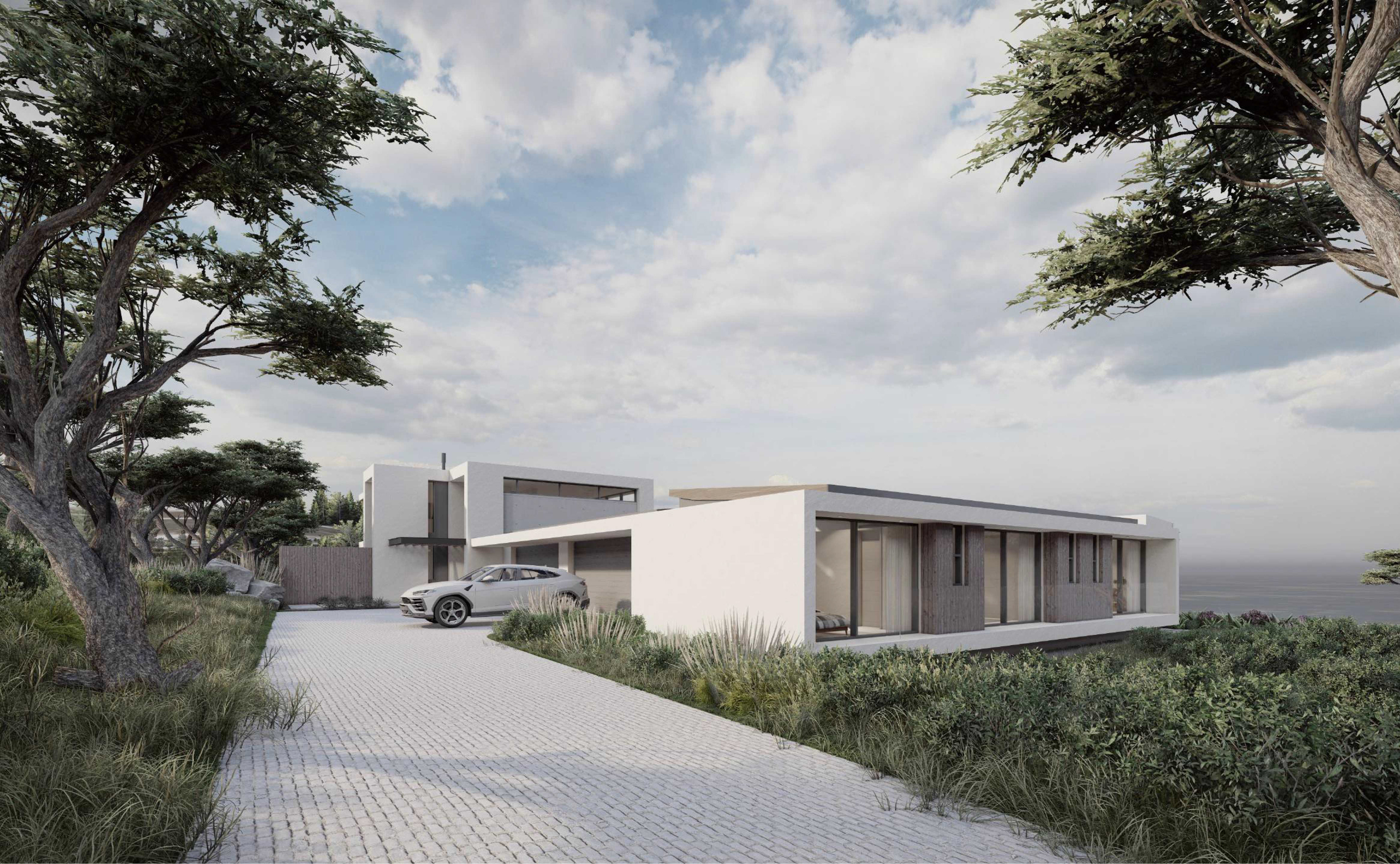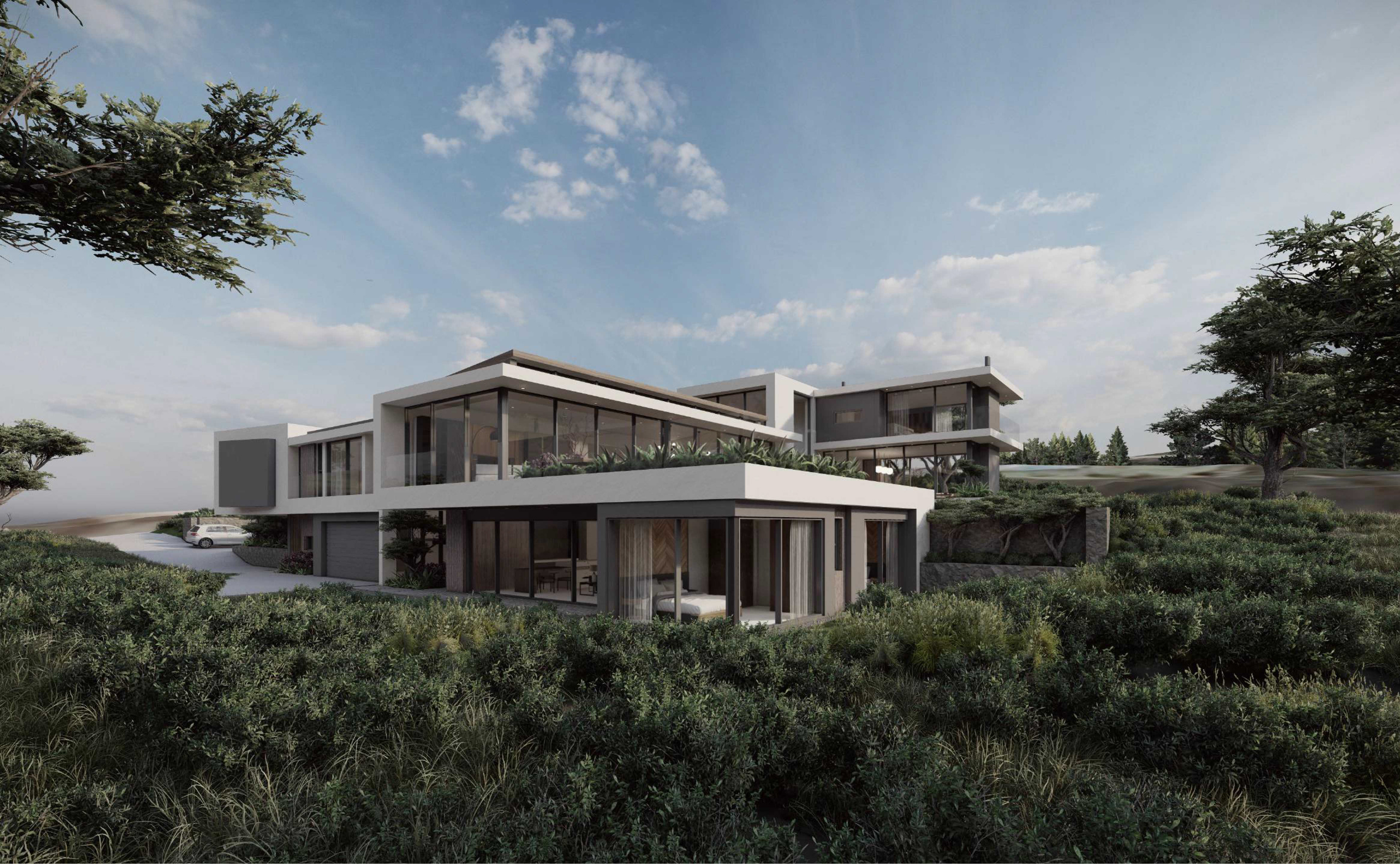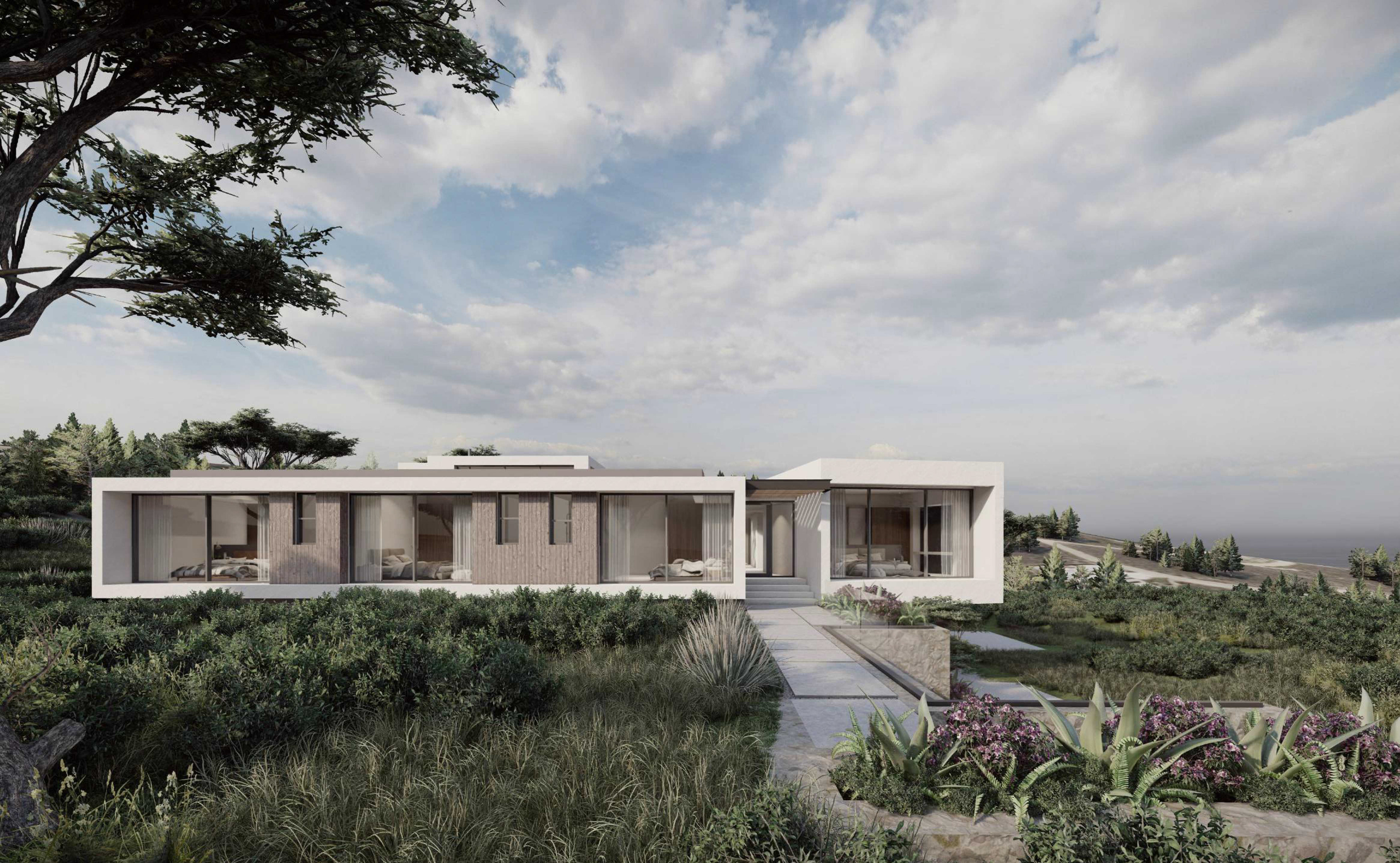 A contemporary addition to OUBAAI GOLF ESTATE in HEROLDS BAY, with modern geometric forms surrounding an internal courtyard.