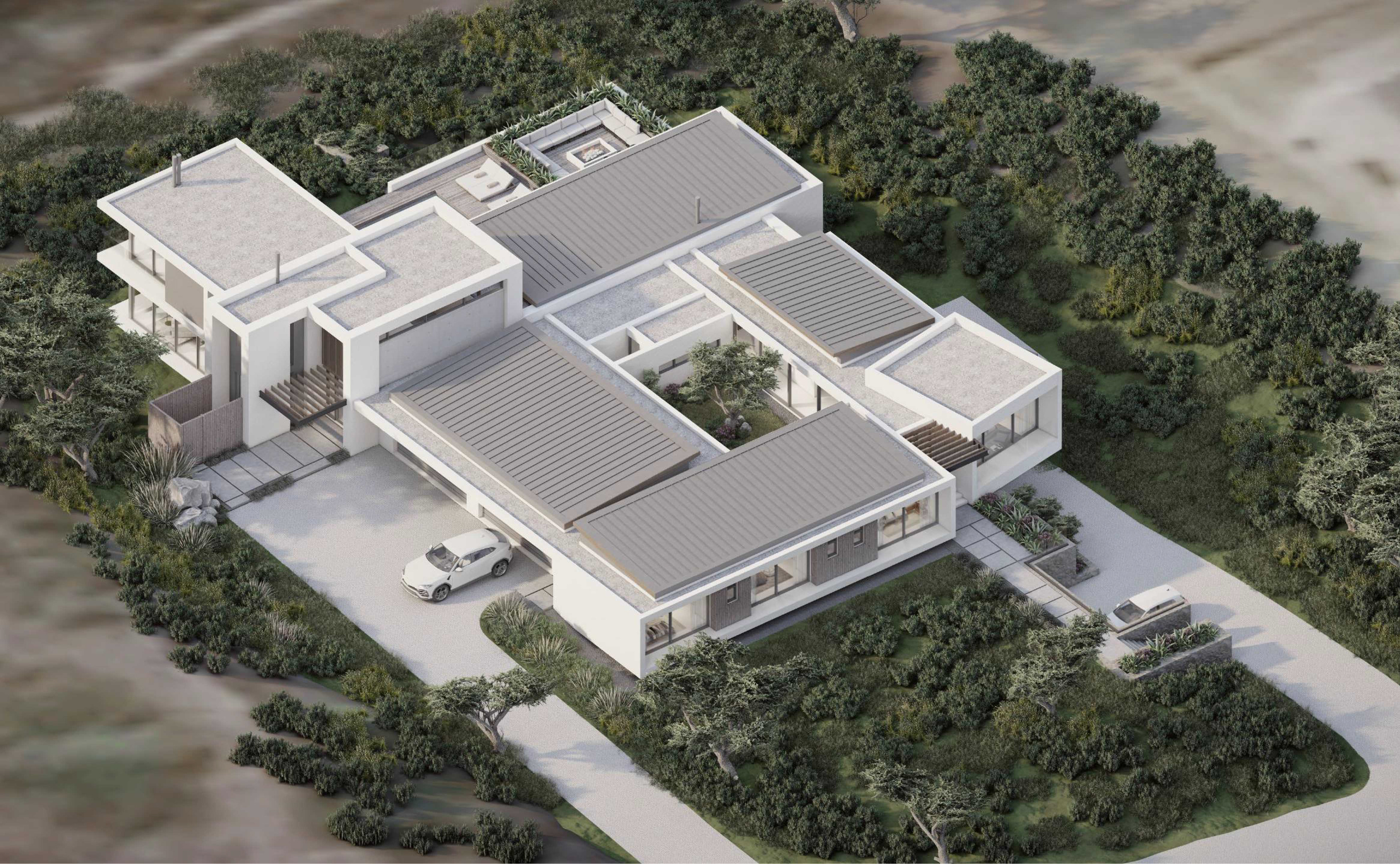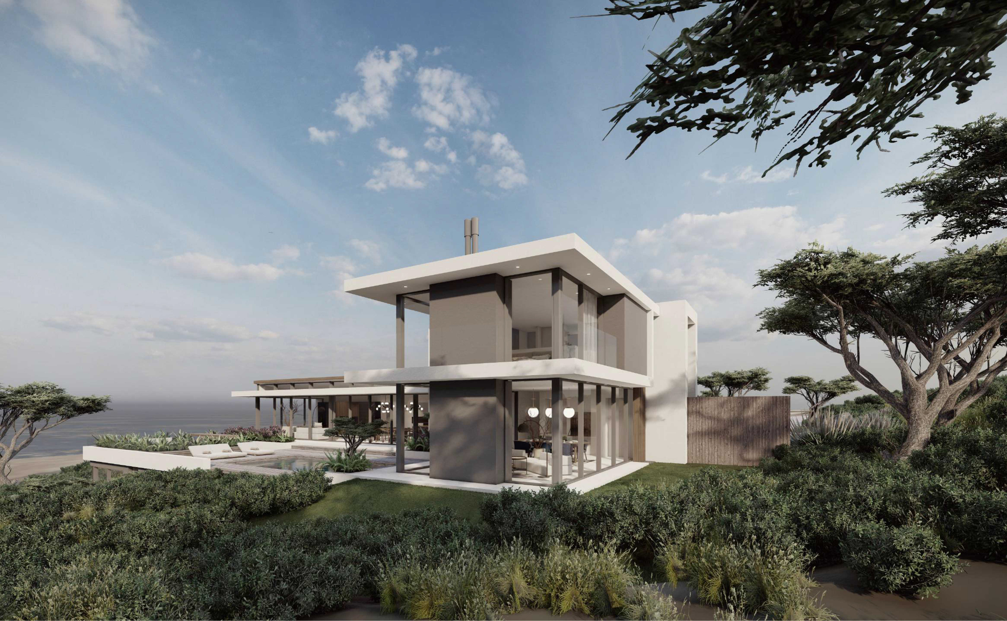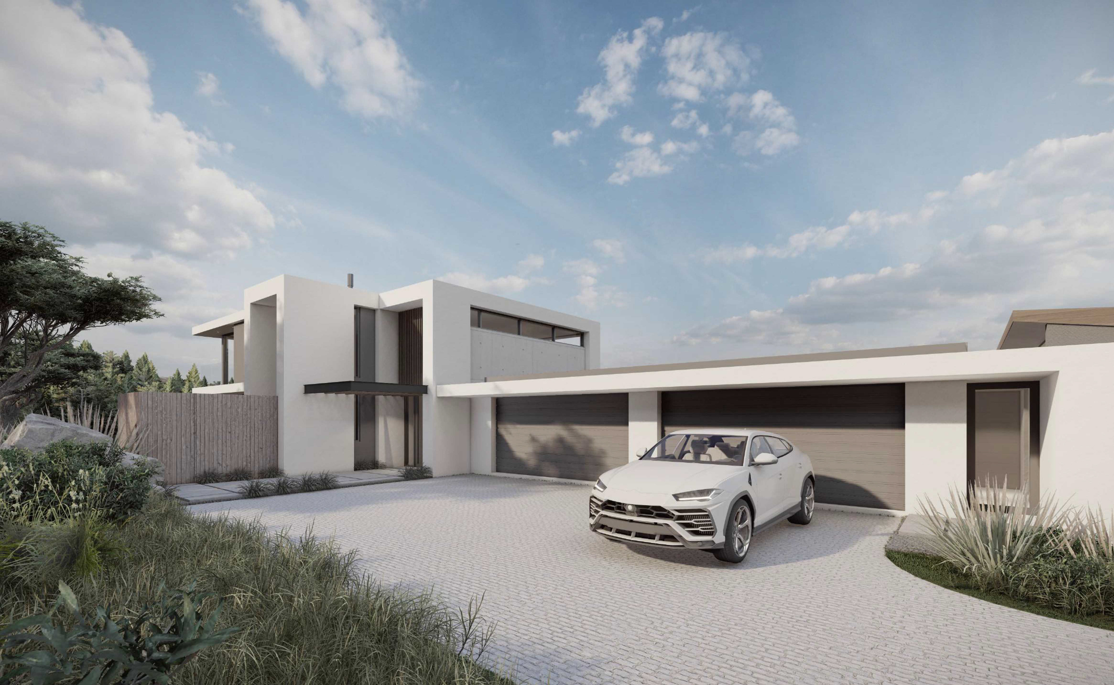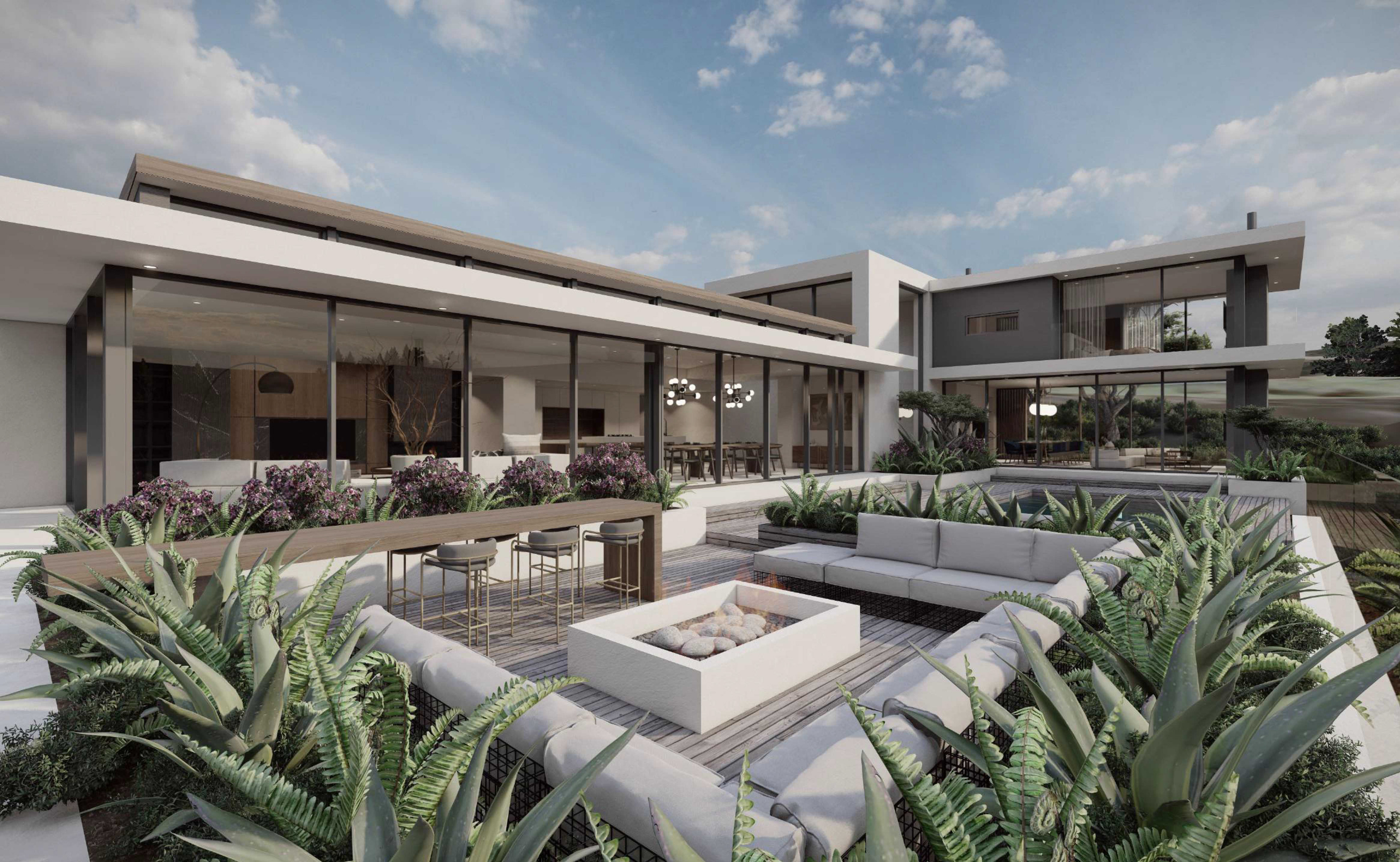A contemporary addition to OUBAAI GOLF ESTATE in HEROLDS BAY, with modern geometric forms surrounding an internal courtyard.