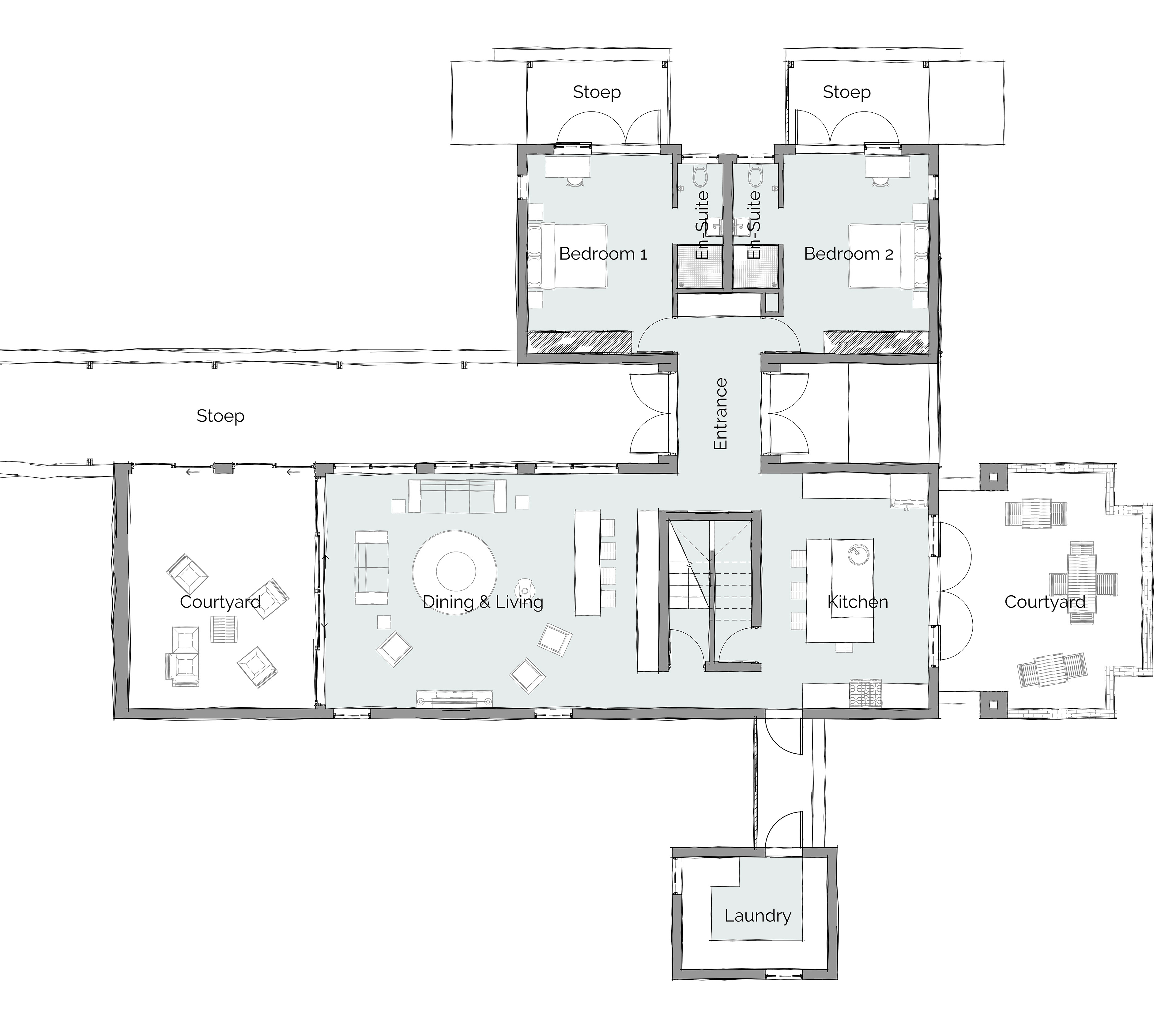 House James is a small house in Hopefield with a modern-industrial and modern-farmhouse aesthetic. The combination of the two ideas resulted in a sophisticated, cost-effective design that provides comfortable and modern living spaces.