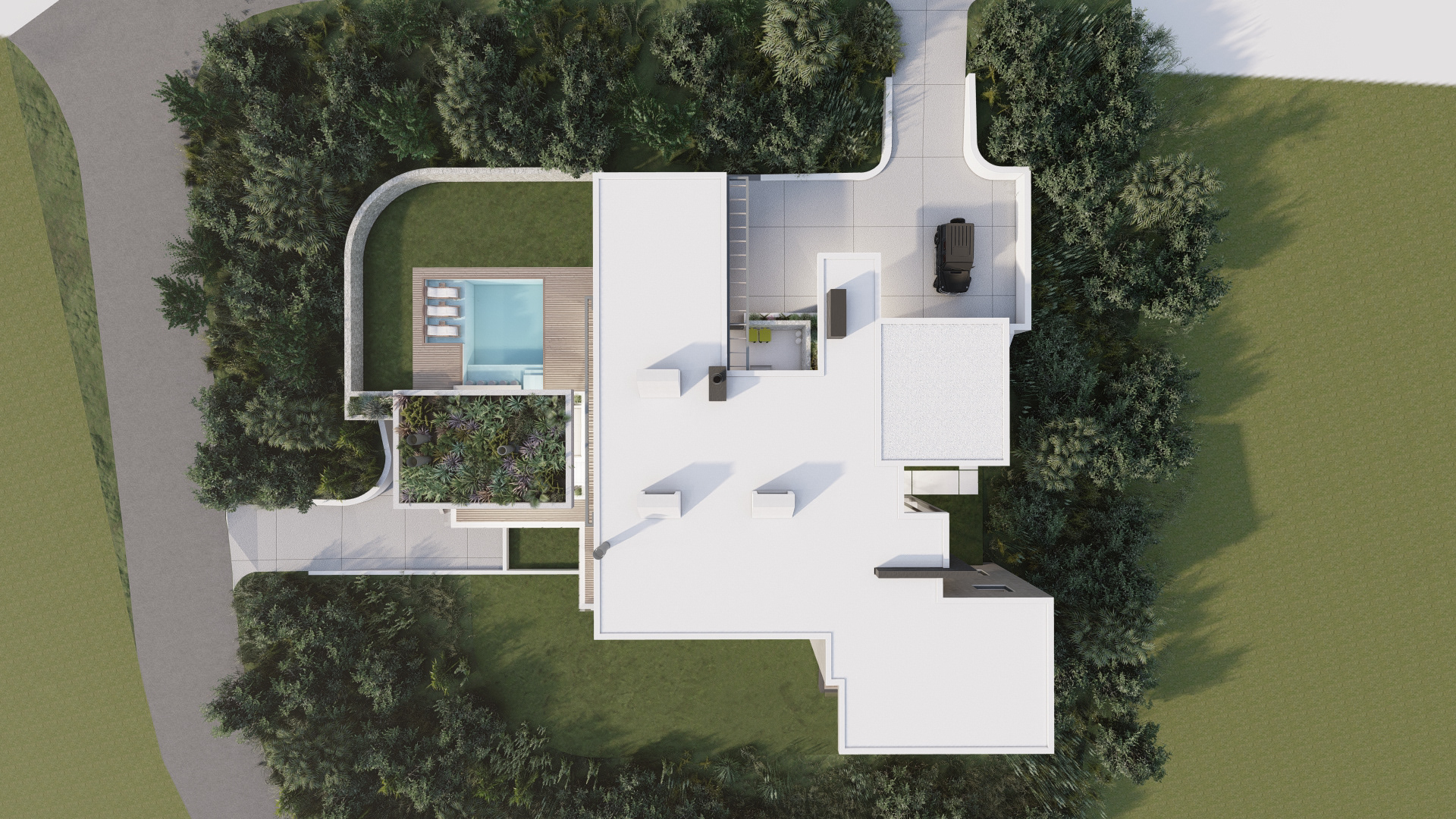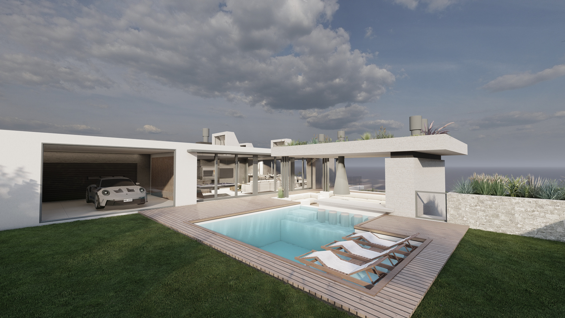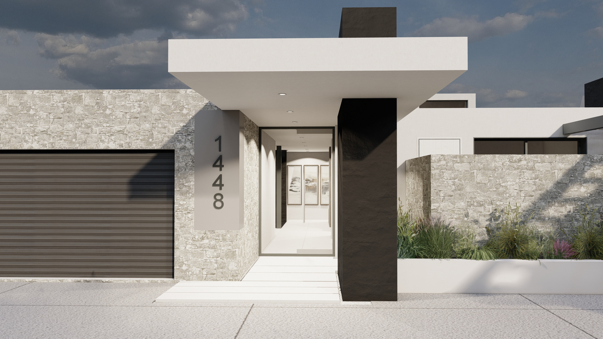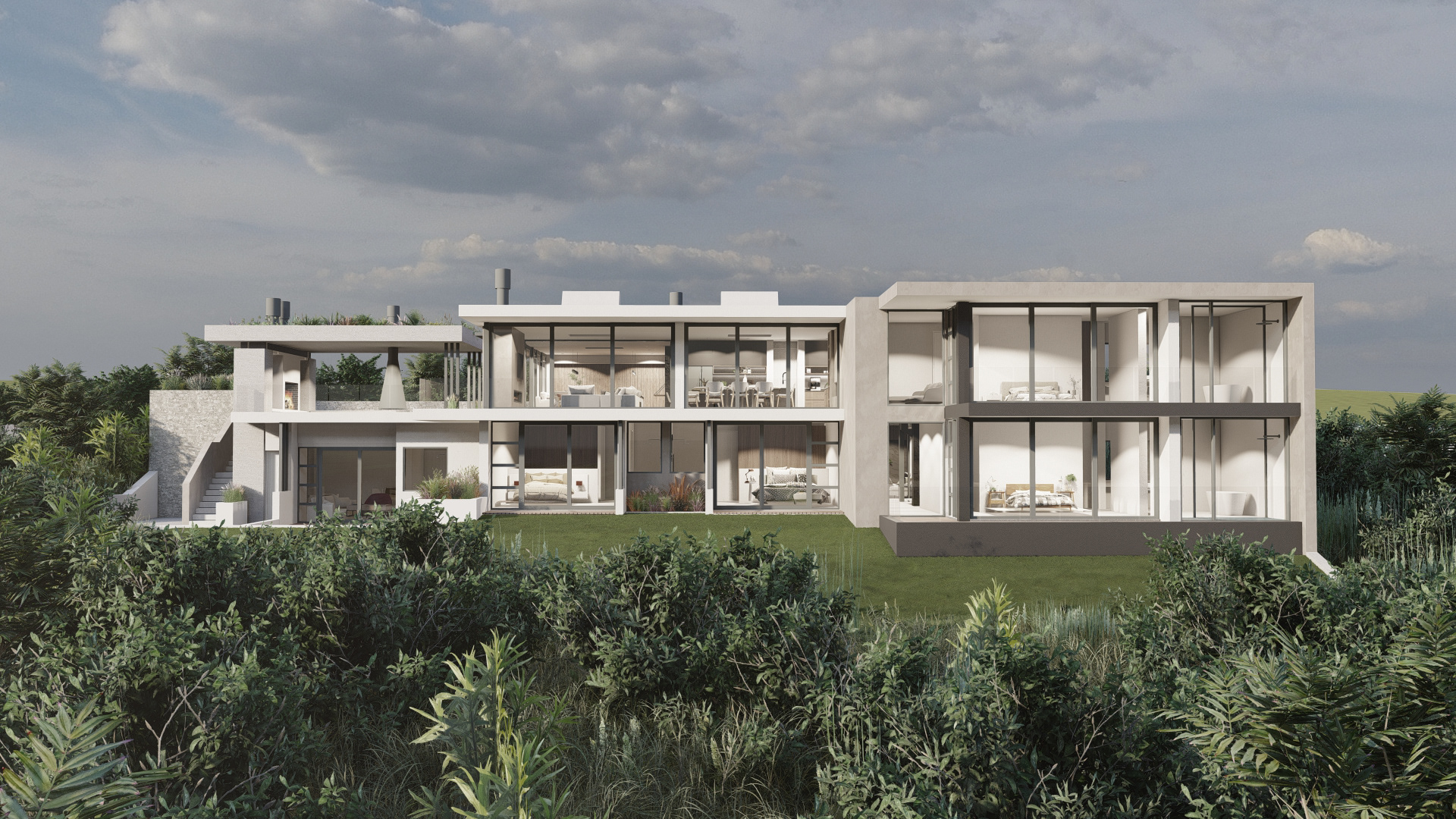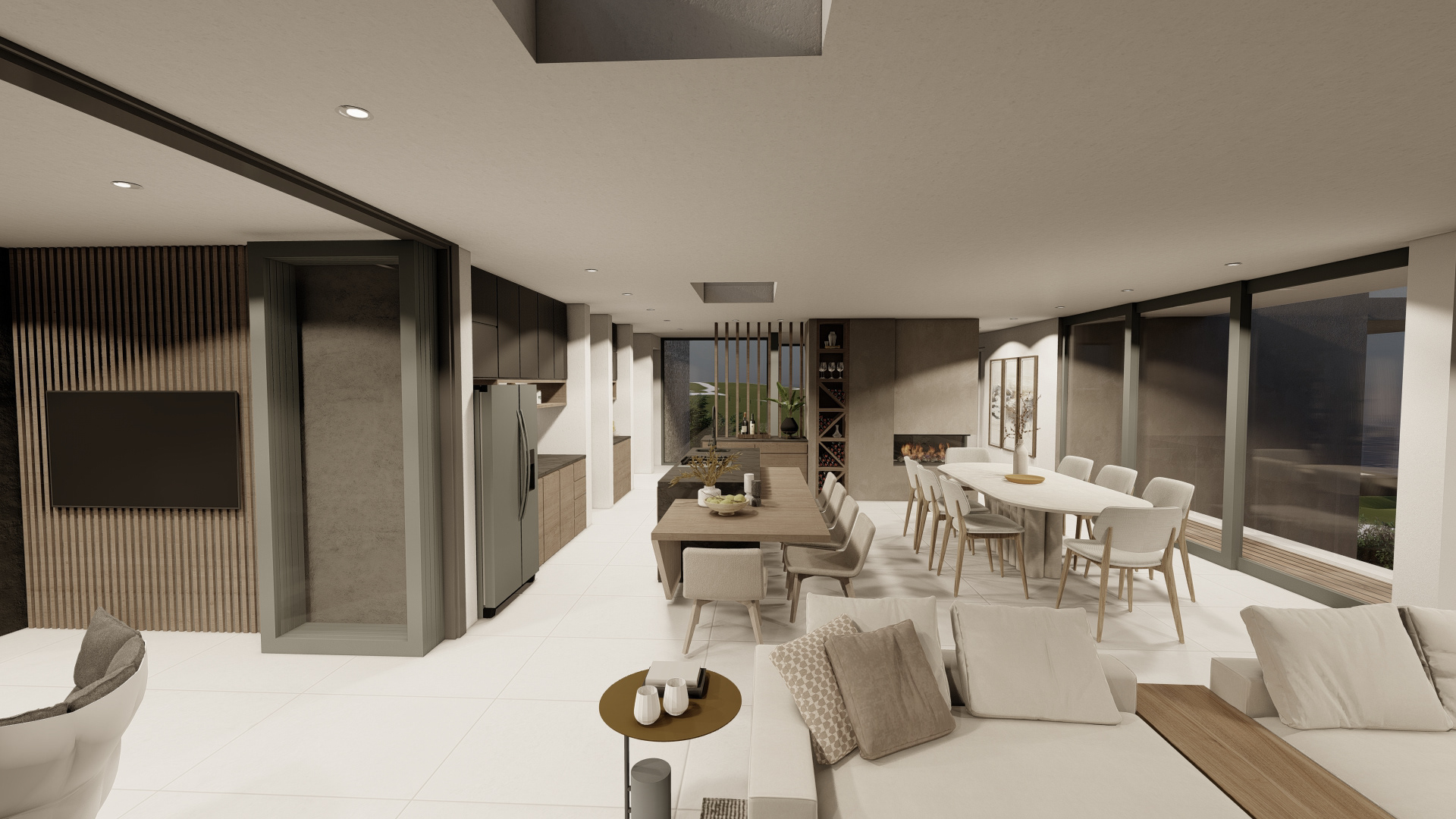 This house situated in Breakwater Bay sits comfortably within the landscape, its warm stone façades helping it blend naturally with its surroundings. Large openings frame clear views of the ocean, giving the home a calm connection to the coast.