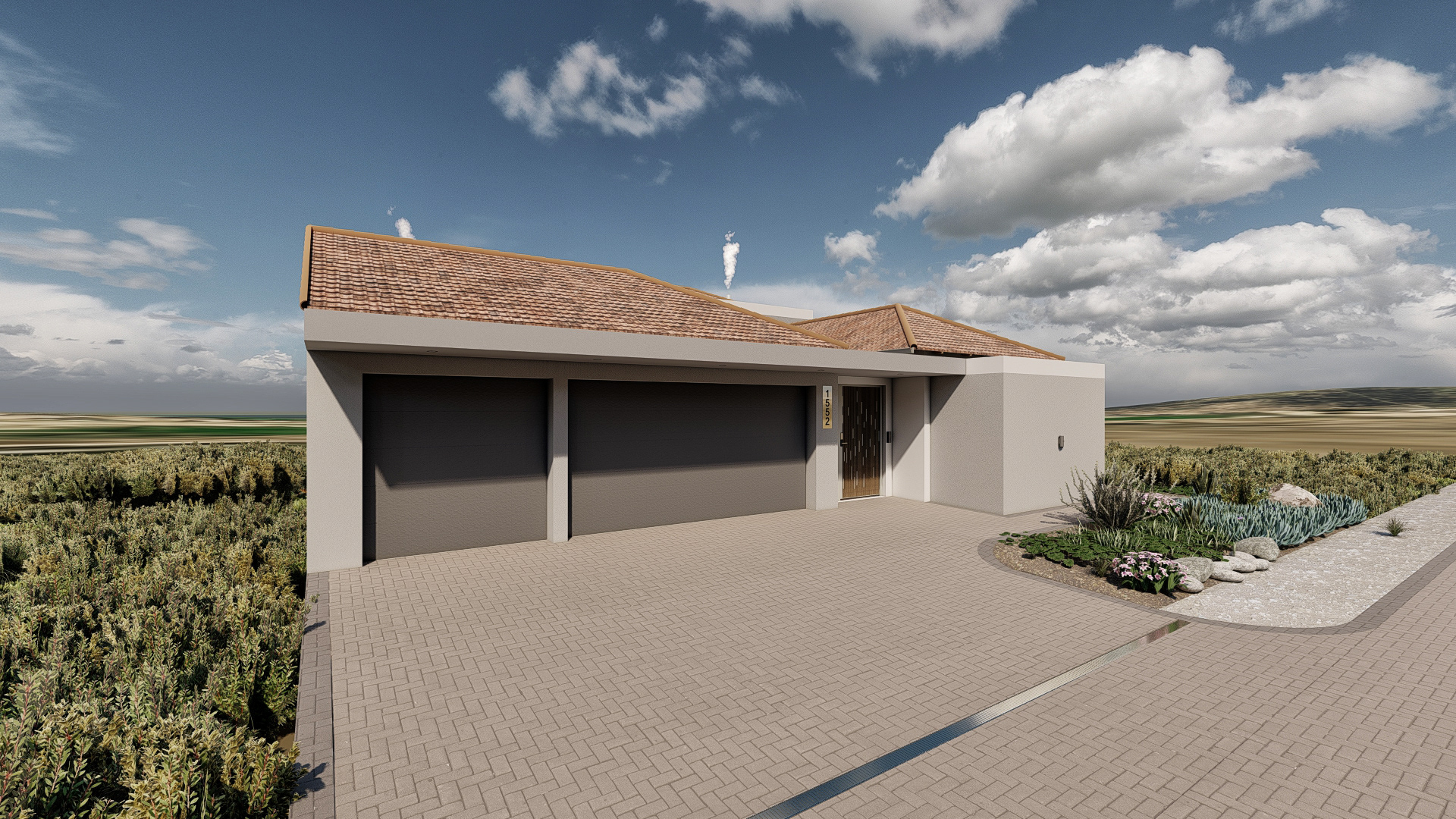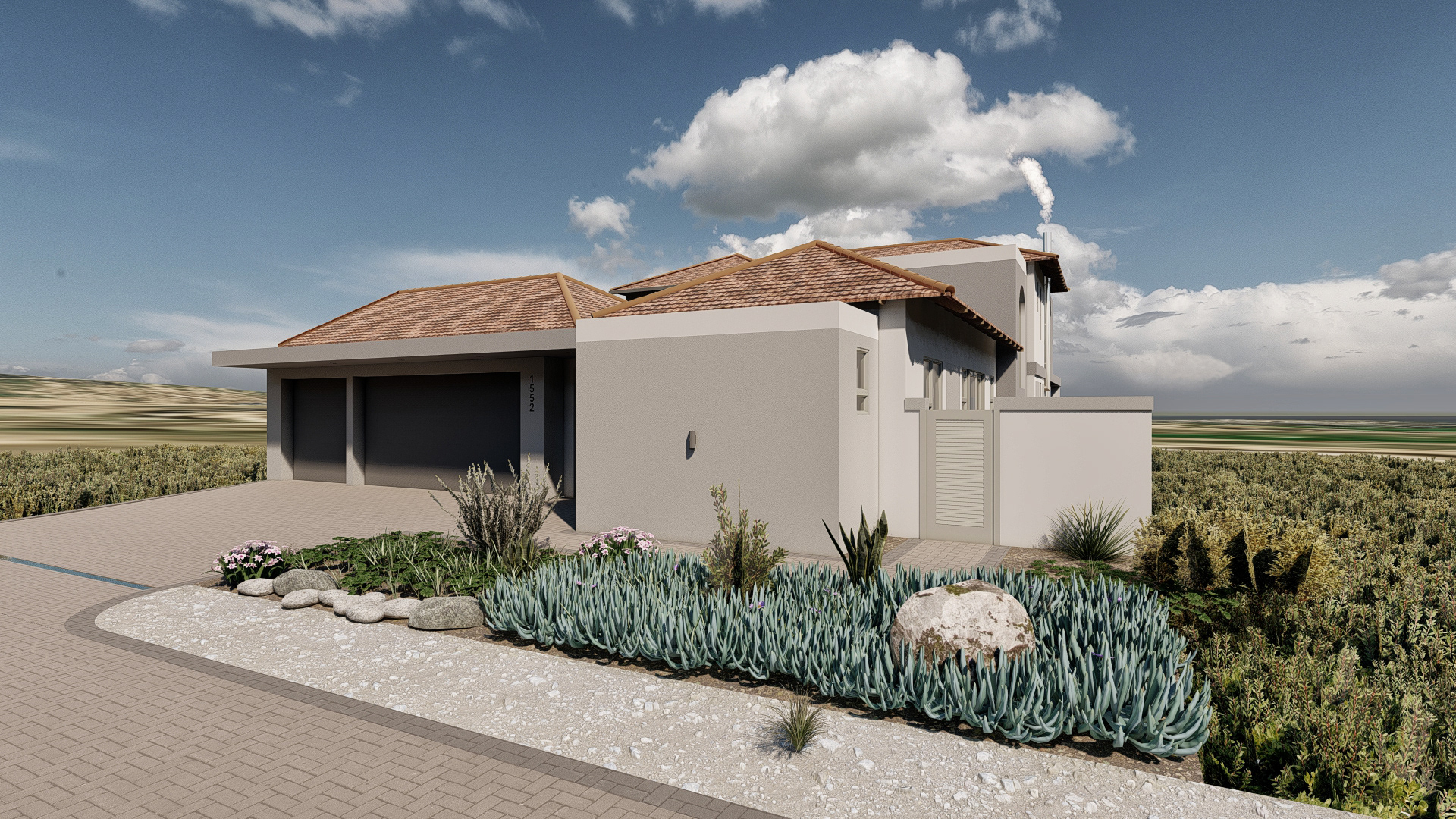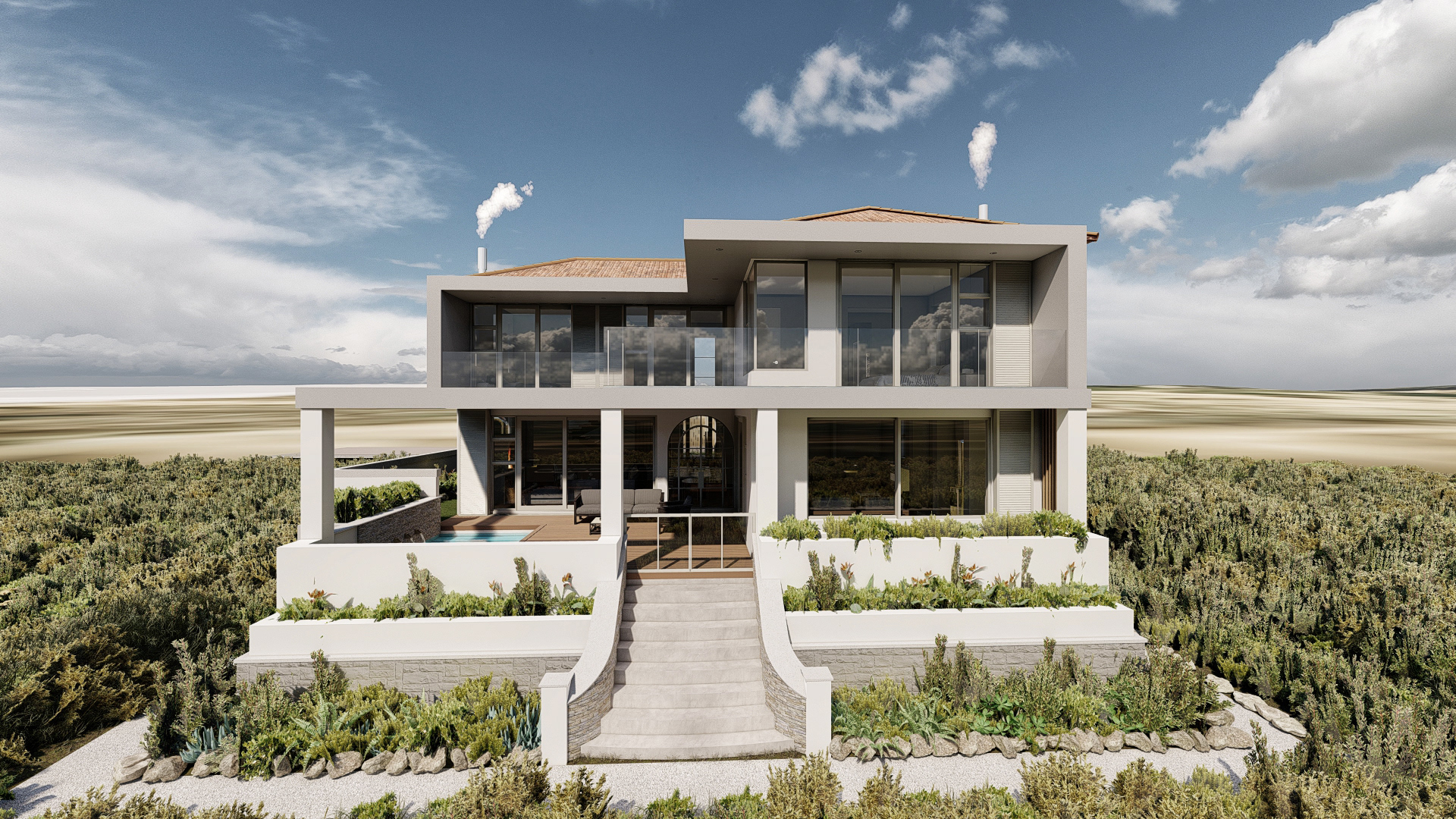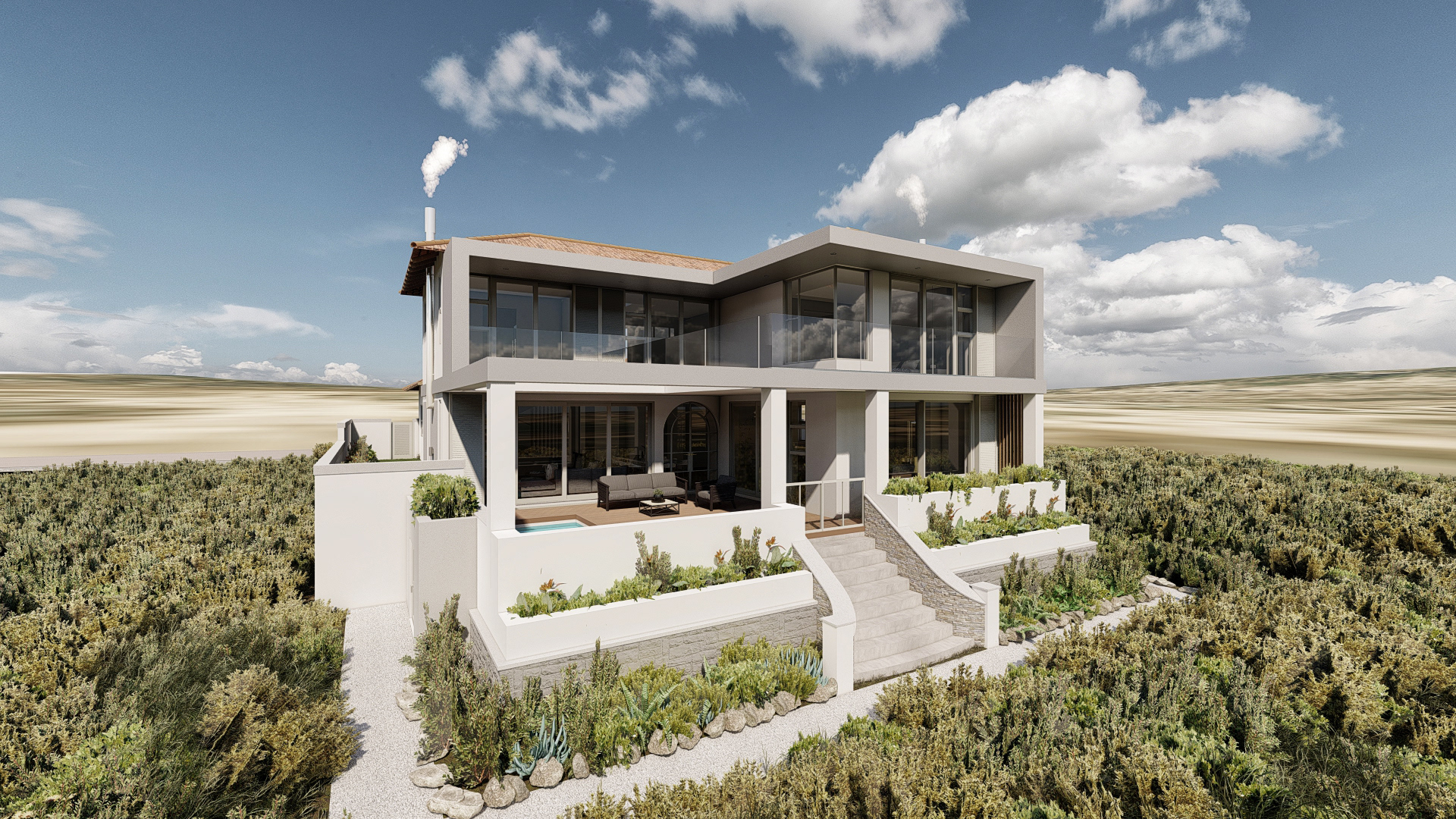 In the new 'Le Juille' area of Langebaan Country Estate, this modern-contemporary inspired house overlooks the golf course, older areas of the estate, and the famous Saldanha Lagoon.