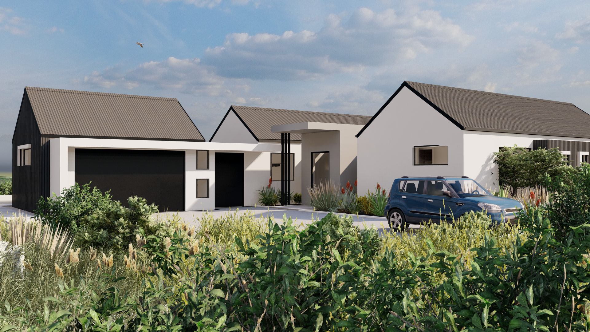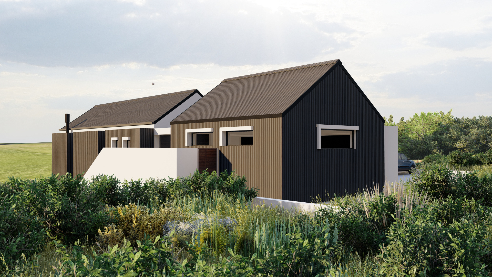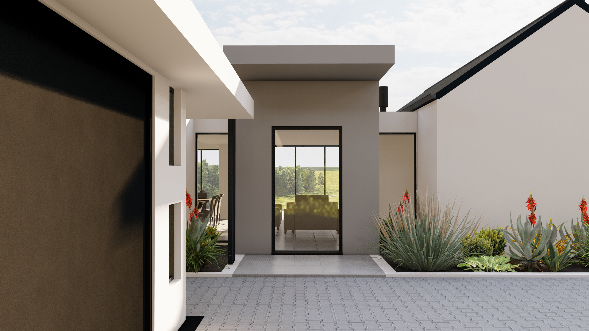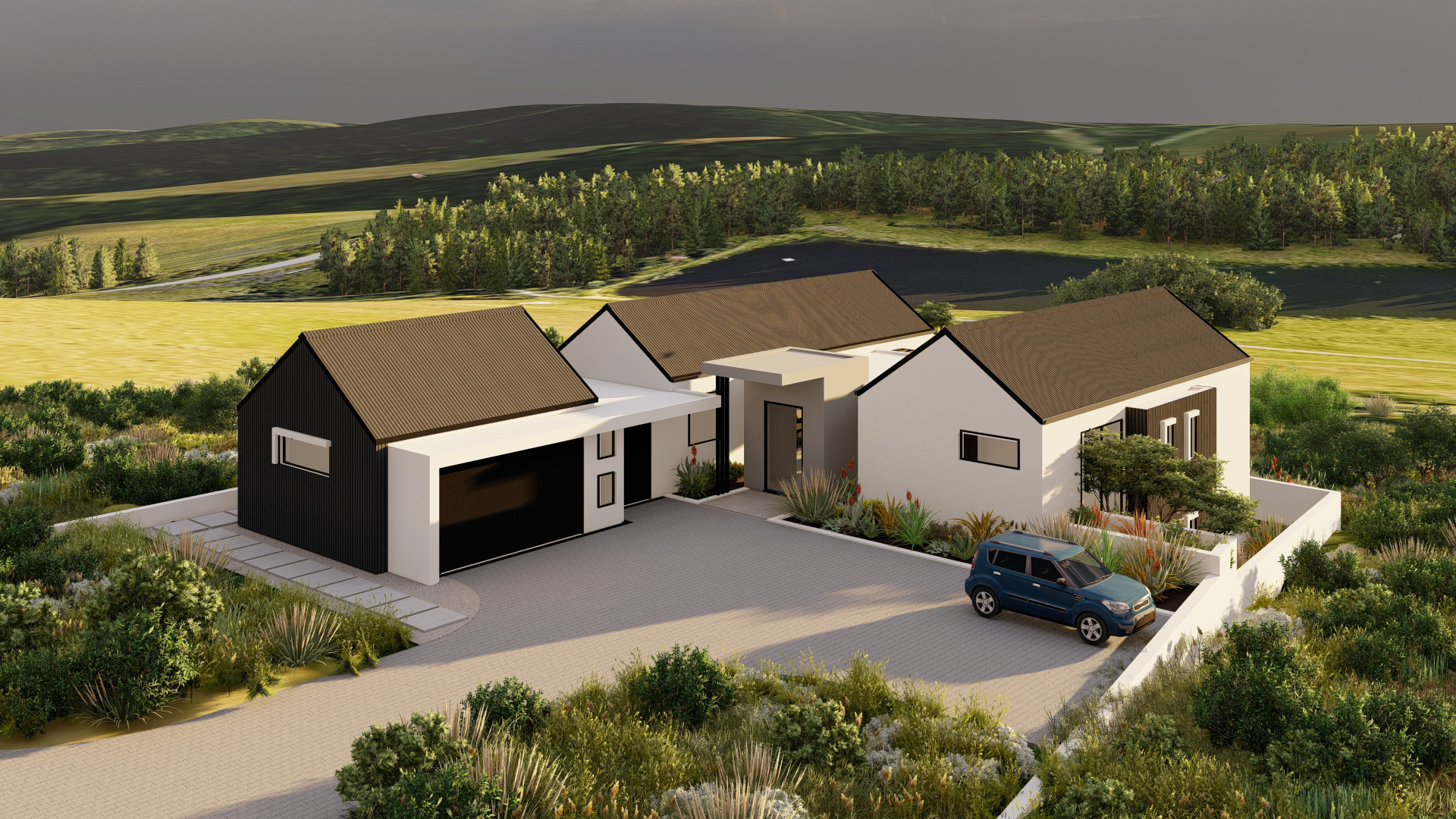 Perched at the forest’s edge, this modern farmhouse opens up to views of the majestic Outeniqua mountain range. The design embraces simplicity with its steel-clad exterior, creating a look of understated elegance.
