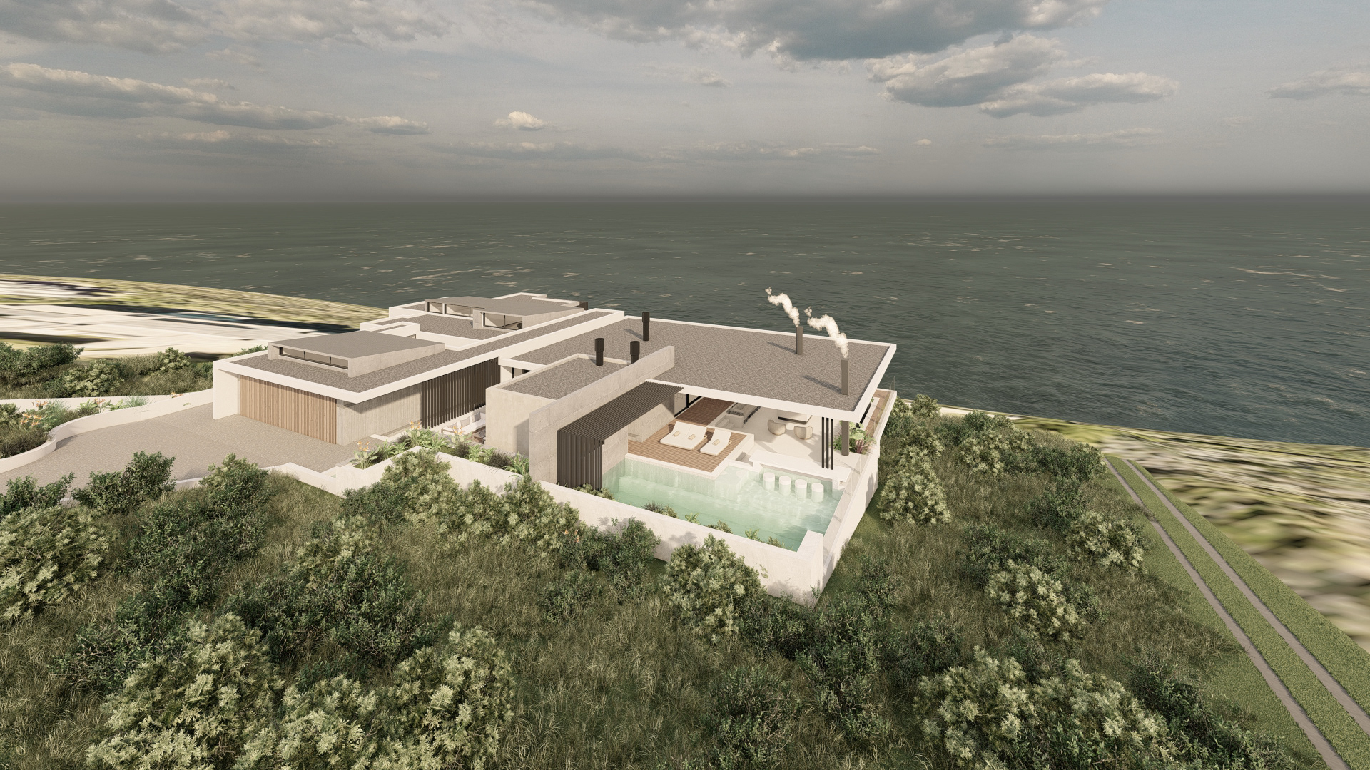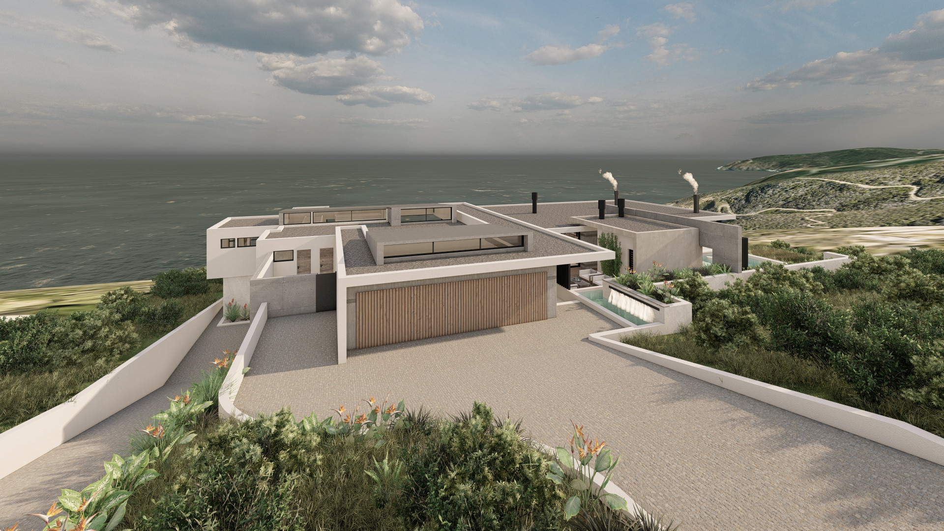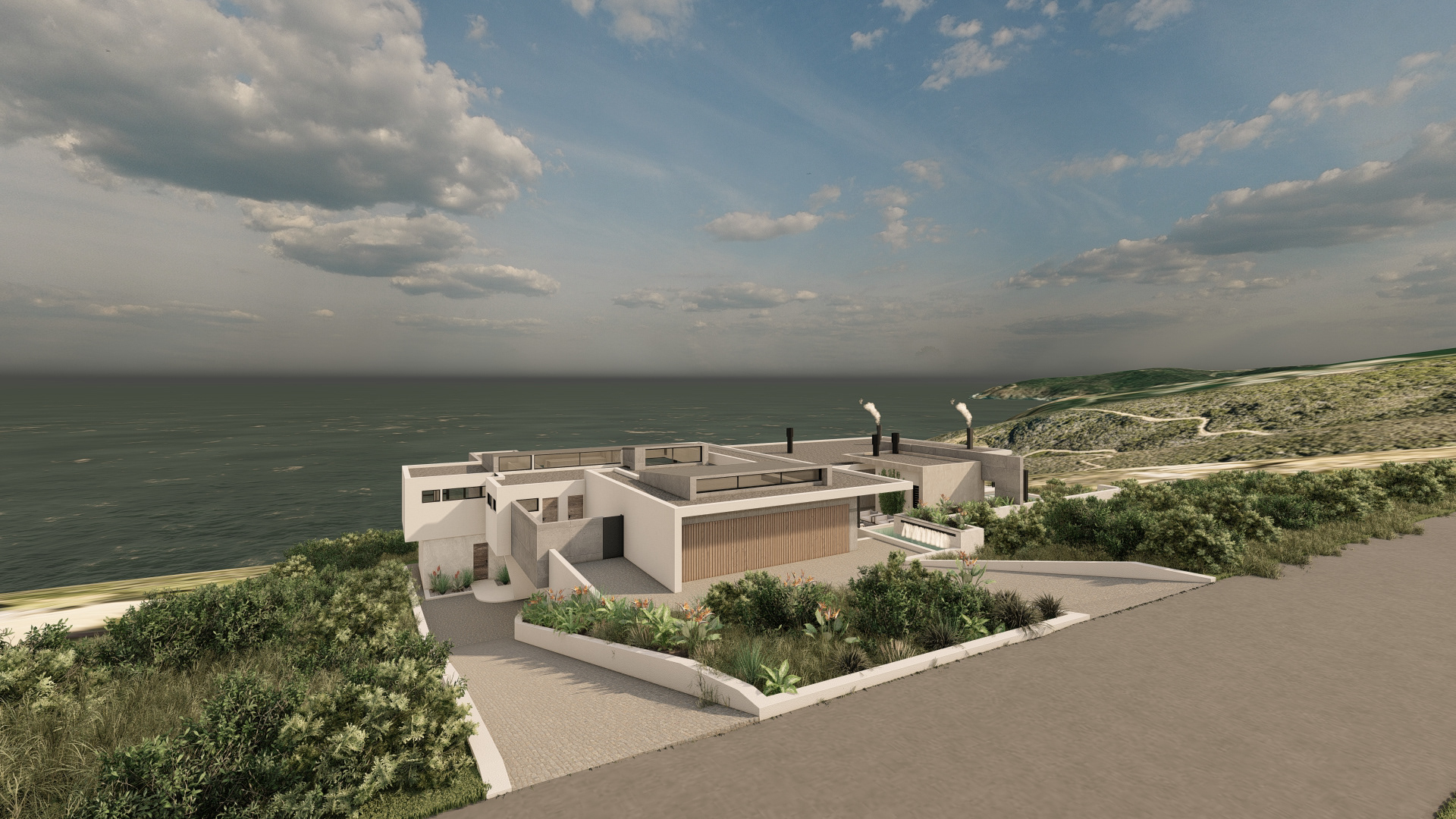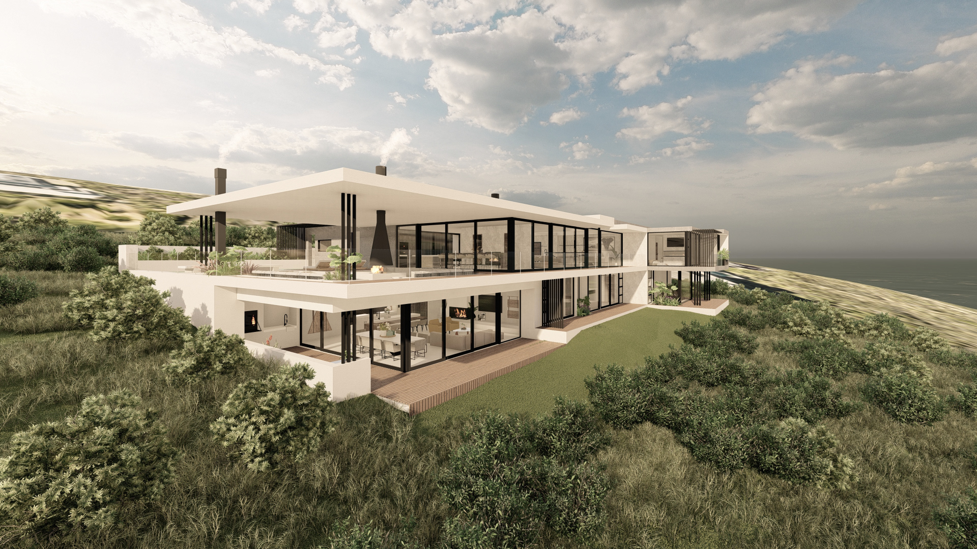 This refined coastal house offers expansive social spaces and natural light, creating a lifestyle centered around connection. Elevated above the landscape, it enjoys uninterrupted views of the ocean from nearly every room.