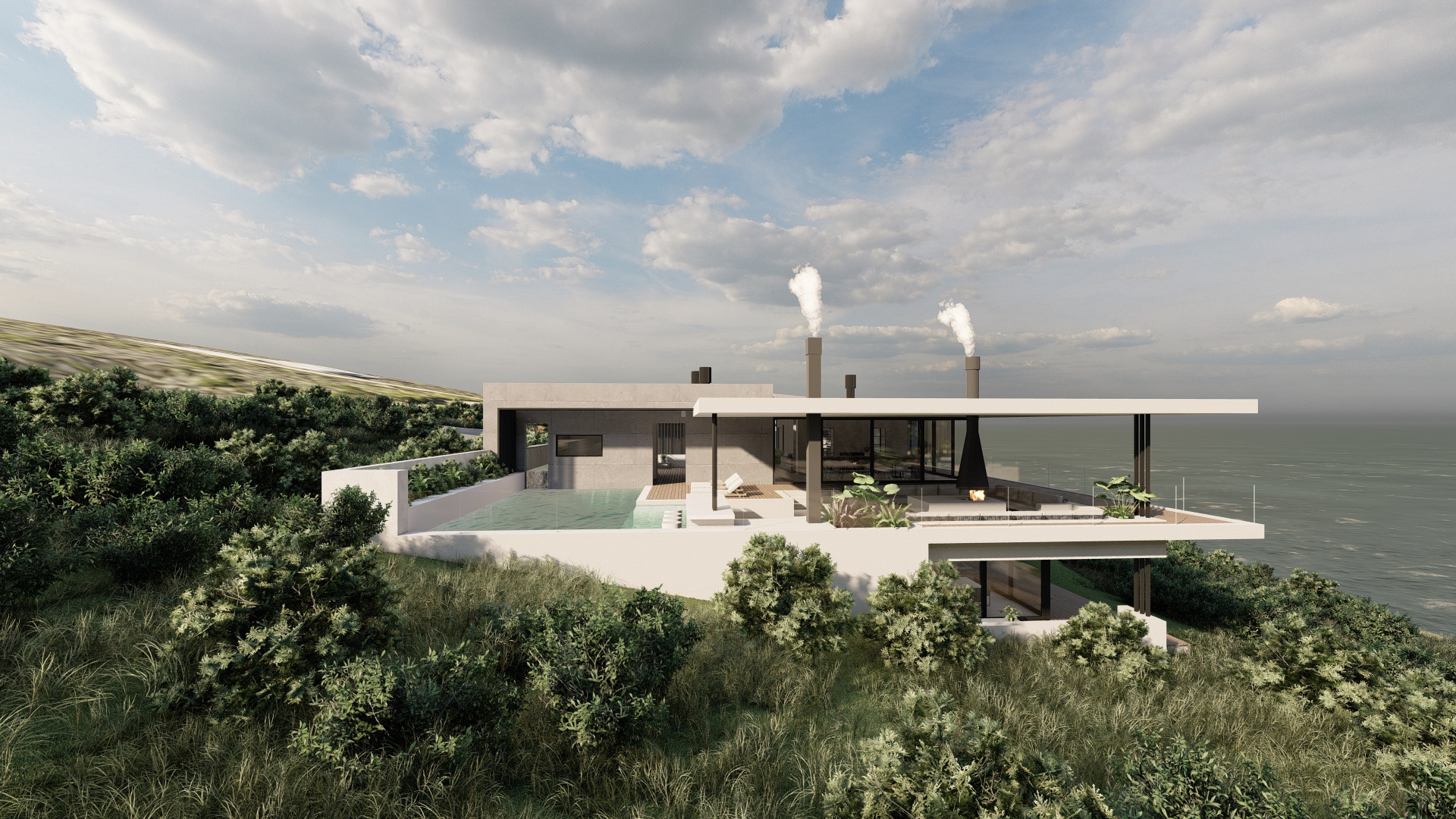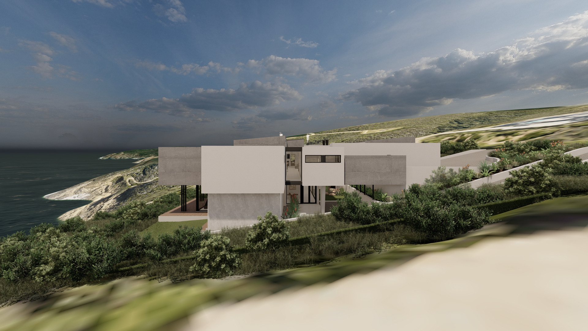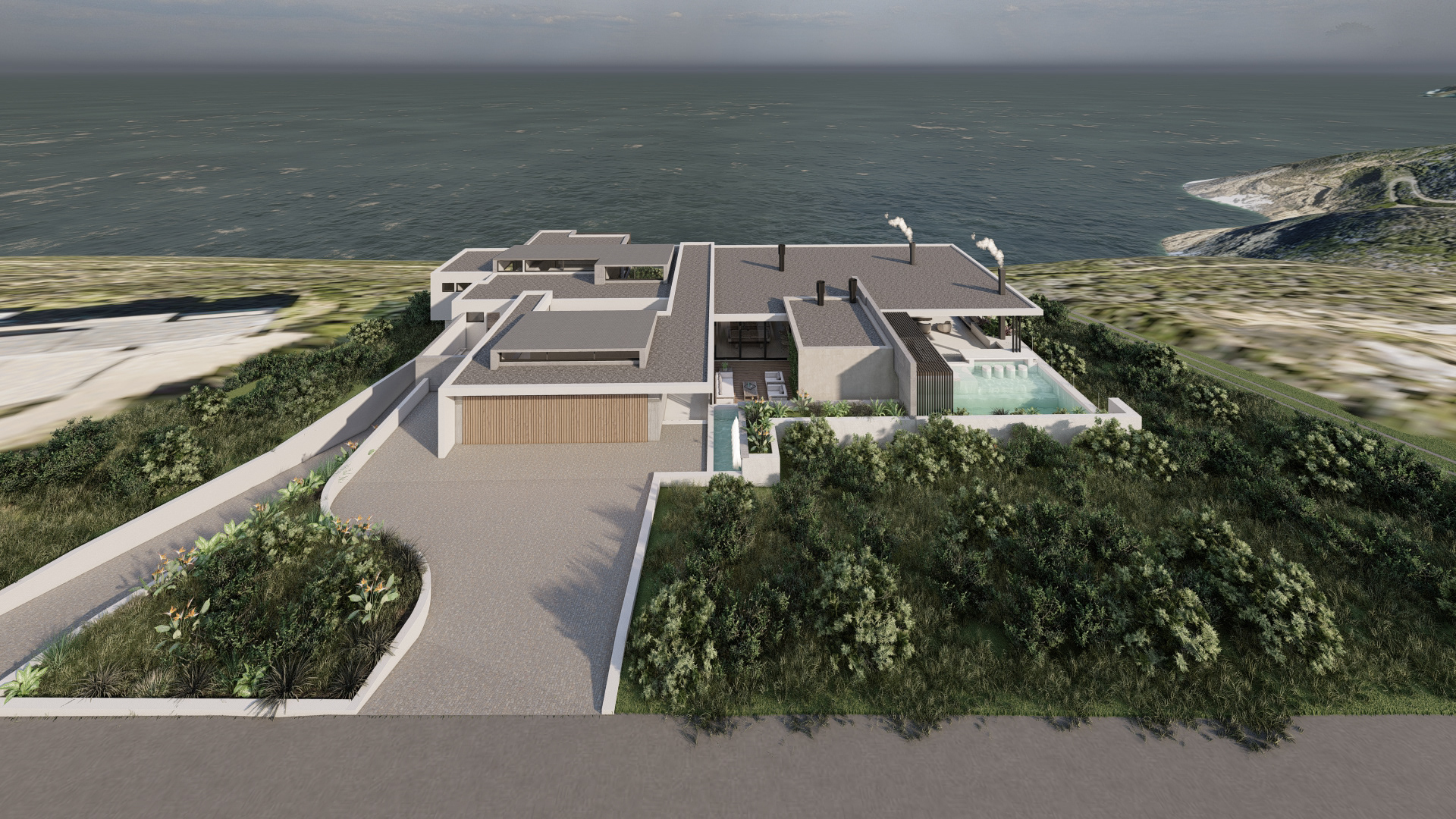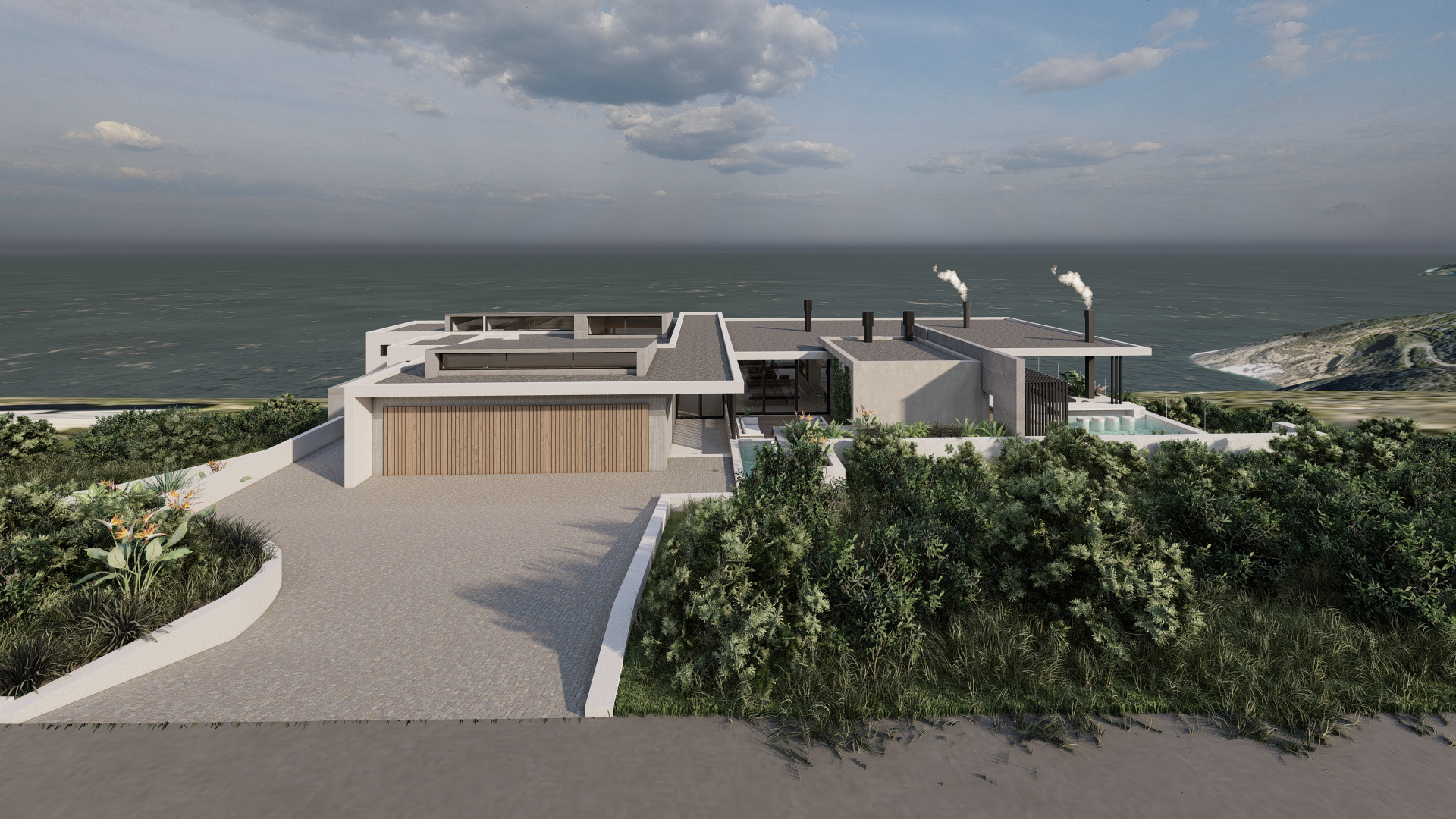This refined coastal house offers expansive social spaces and natural light, creating a lifestyle centered around connection. Elevated above the landscape, it enjoys uninterrupted views of the ocean from nearly every room.