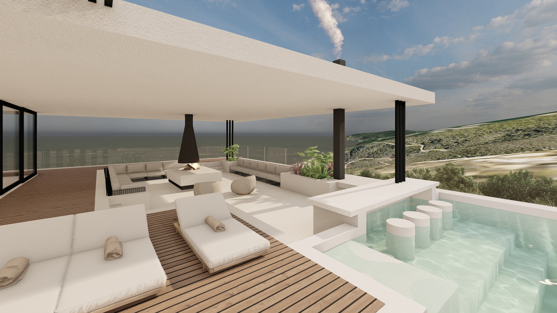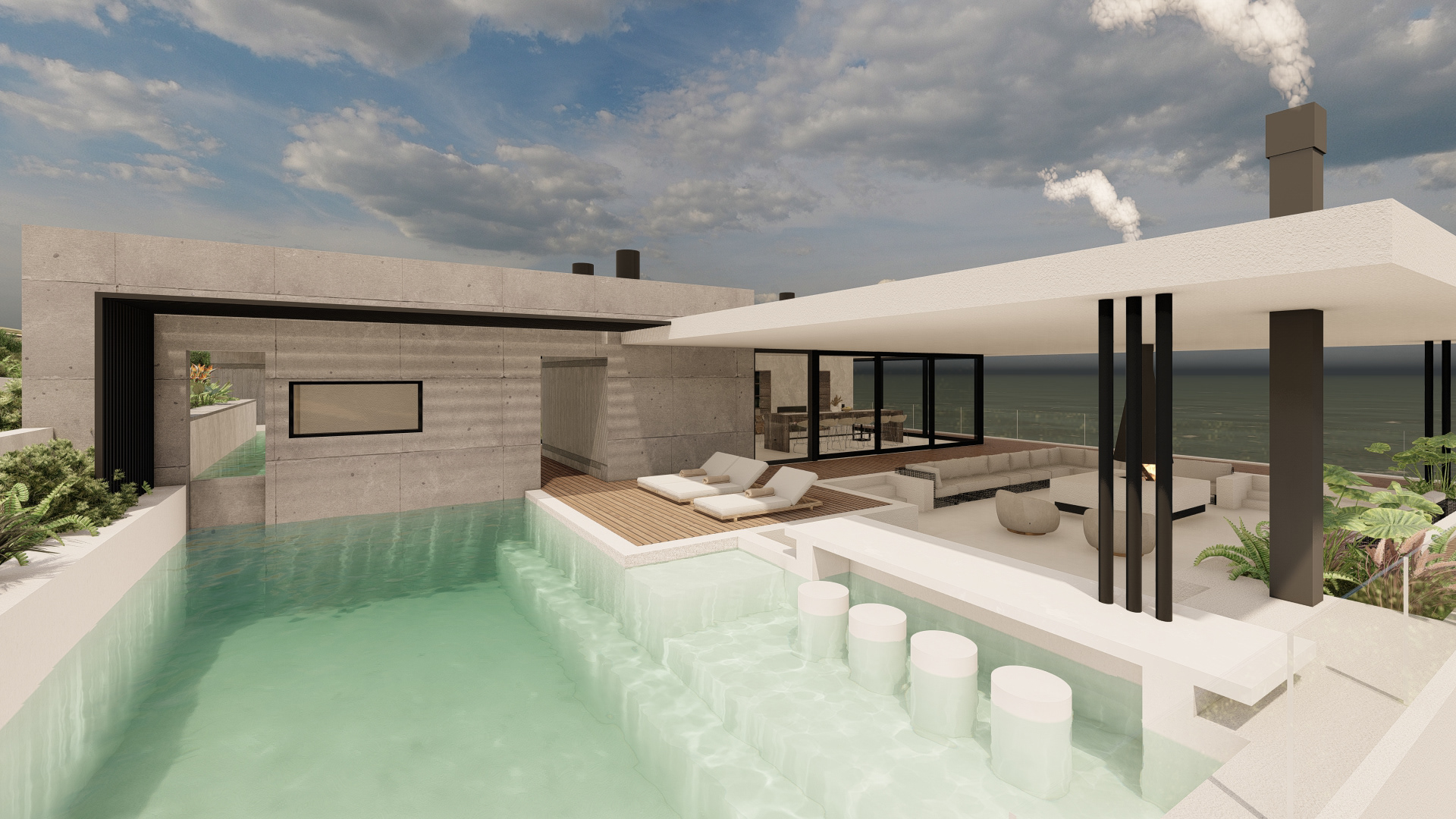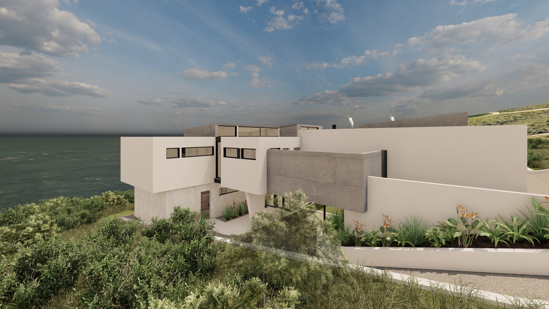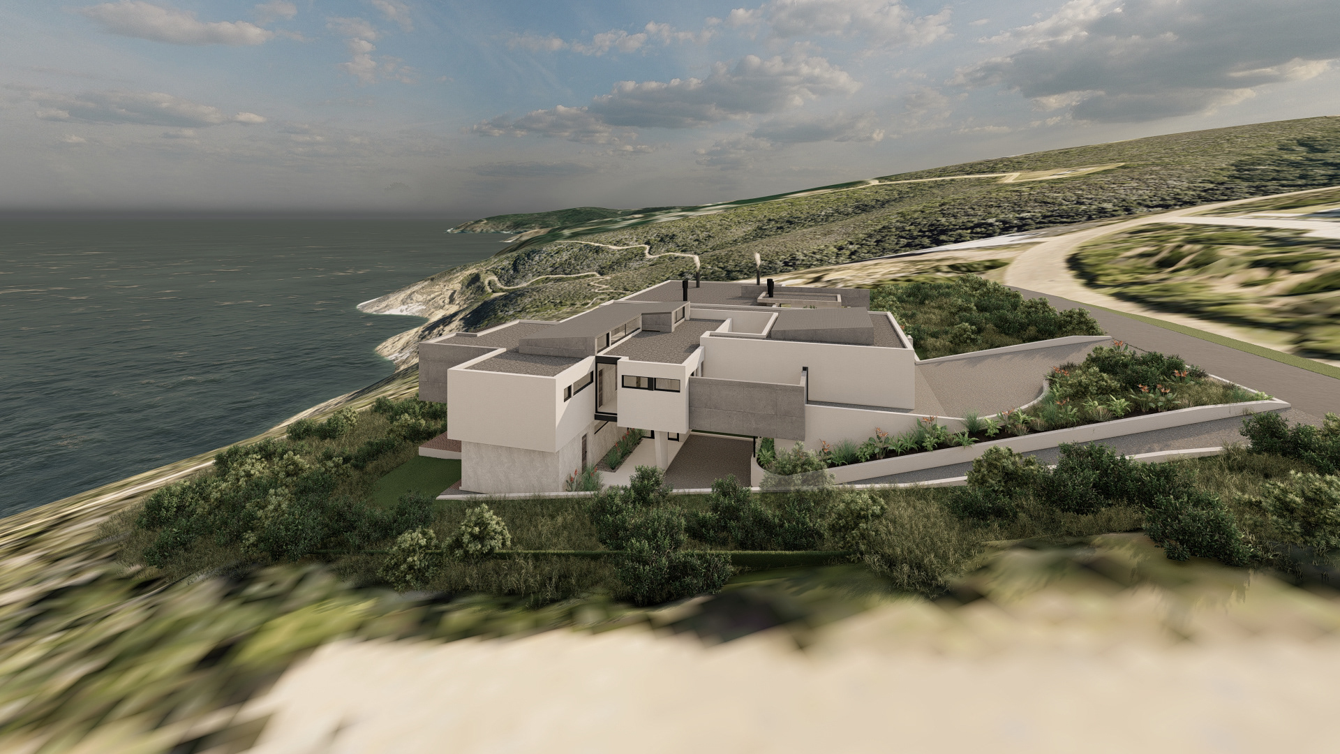 This refined coastal house offers expansive social spaces and natural light, creating a lifestyle centered around connection. Elevated above the landscape, it enjoys uninterrupted views of the ocean from nearly every room.