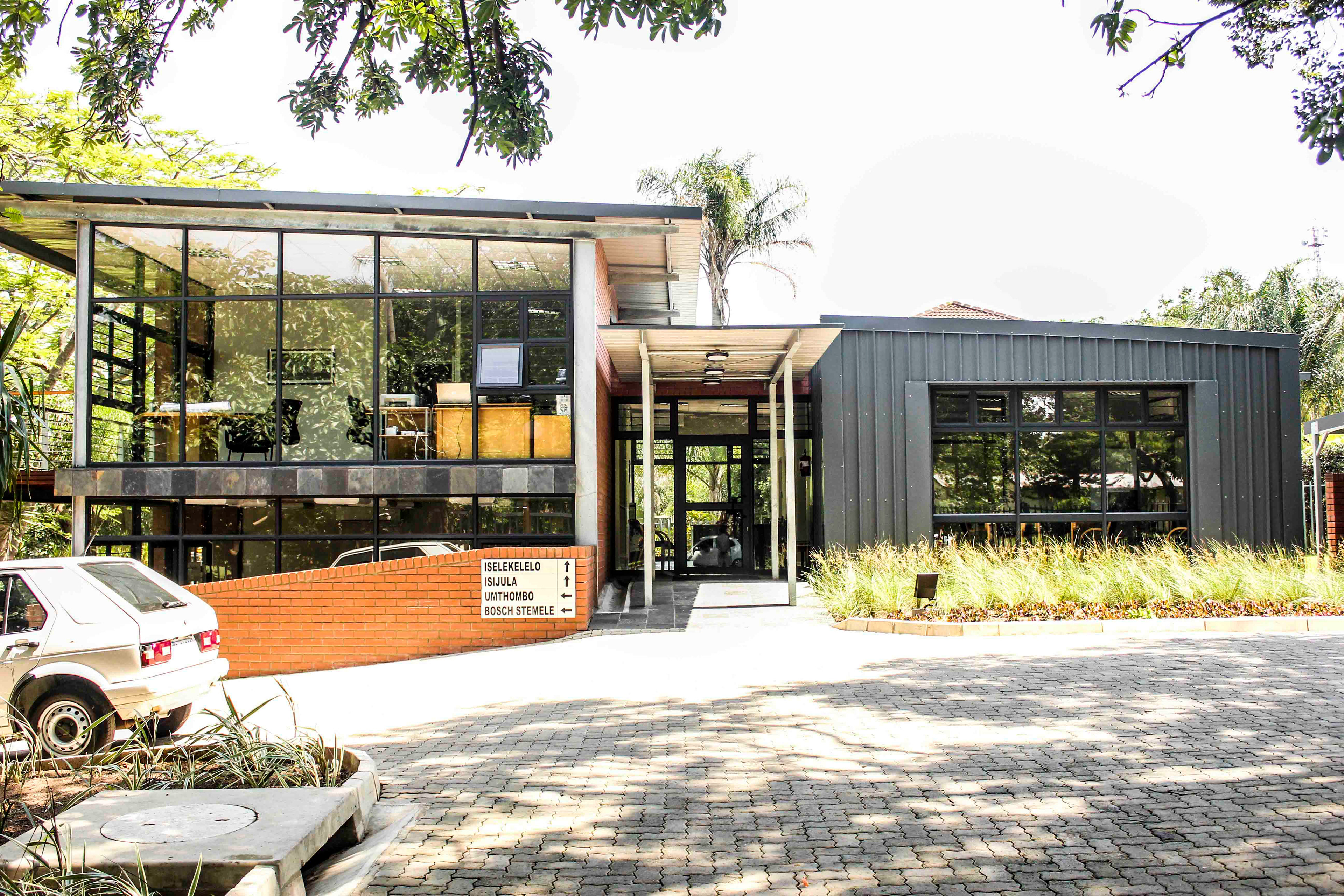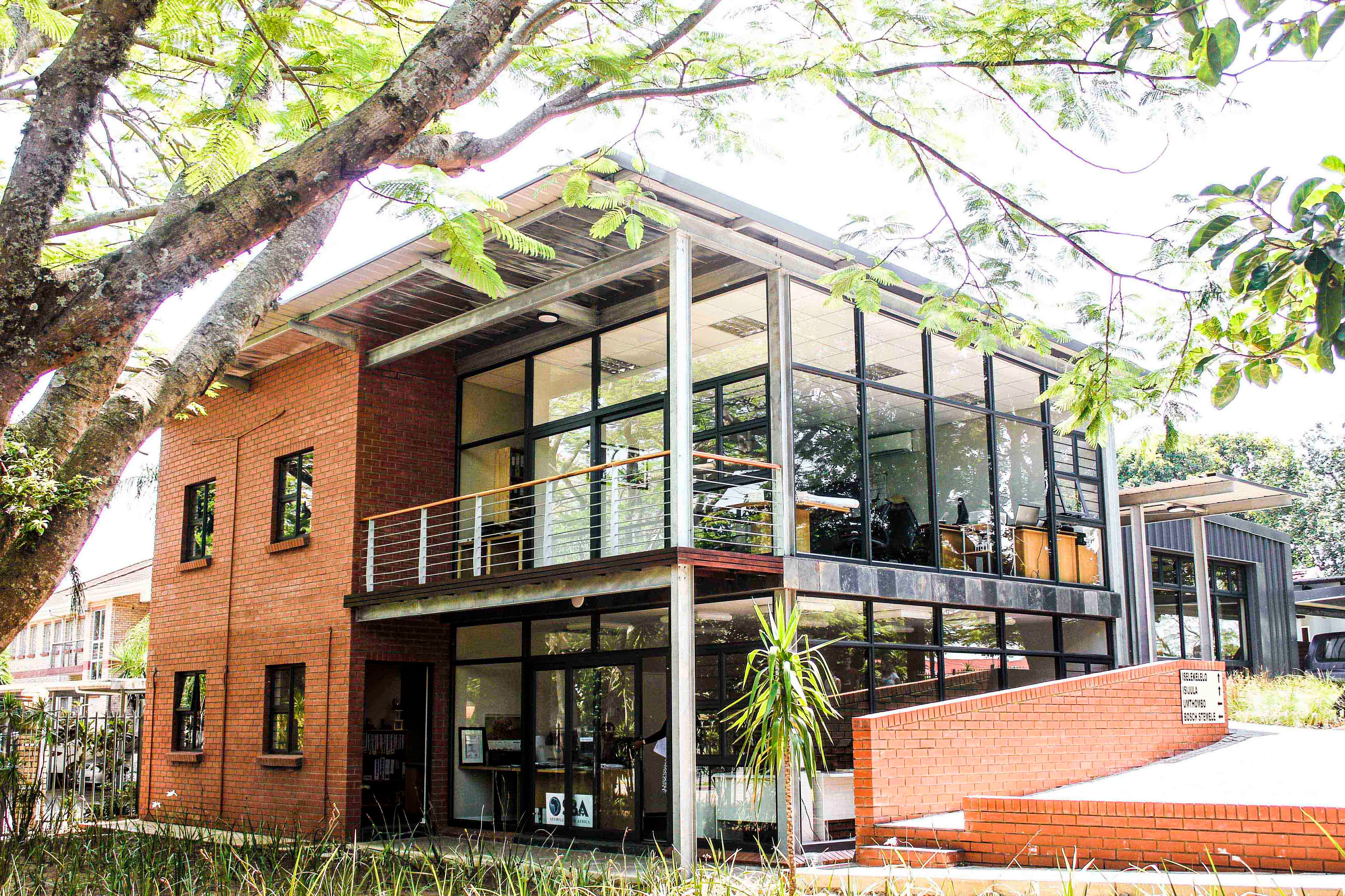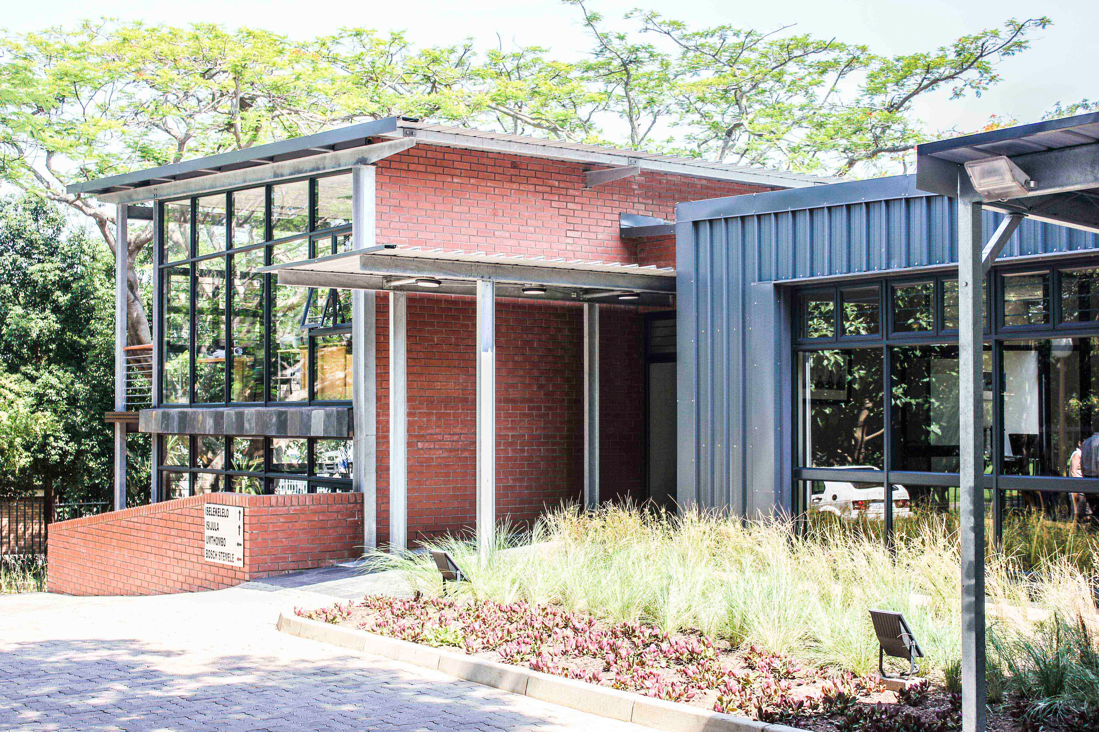 The Mtuba Office Park aimed to stand out on it's street corner by incorporating striking Face-brick, vertical cladding and lightweight steel structural elements.