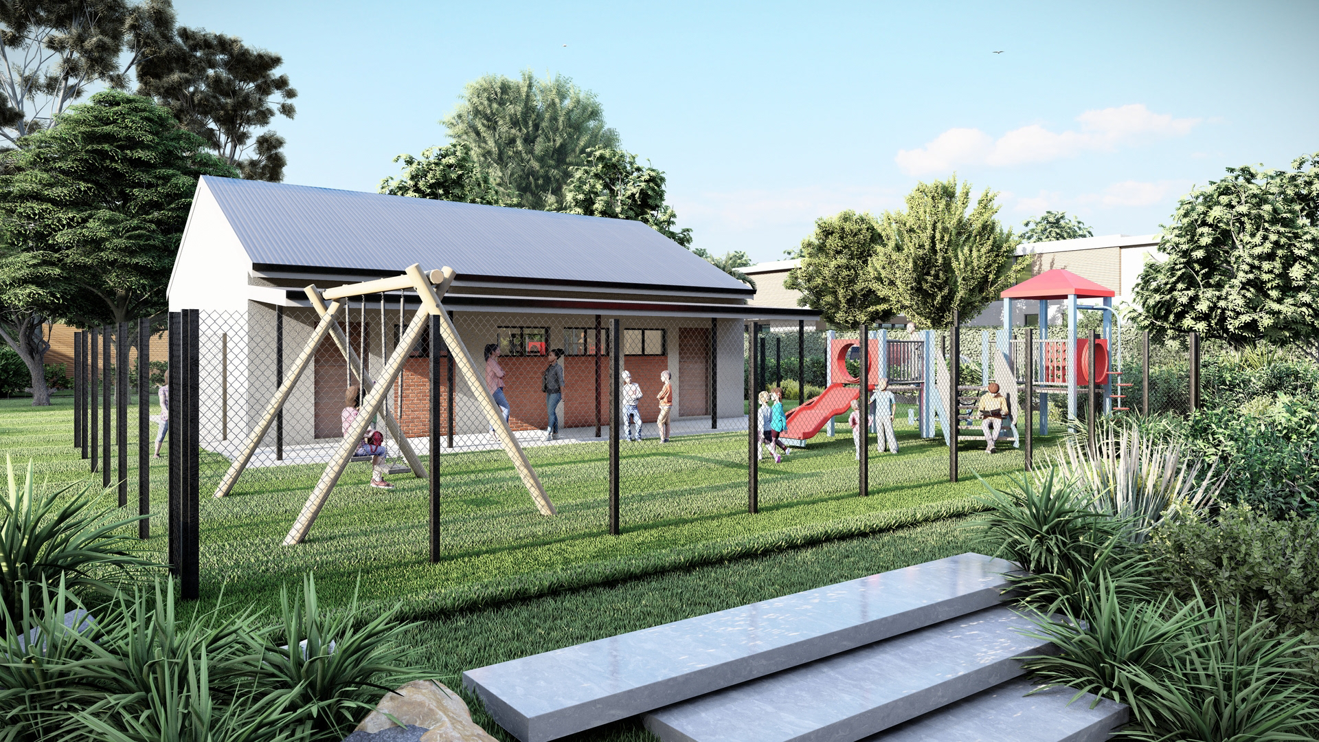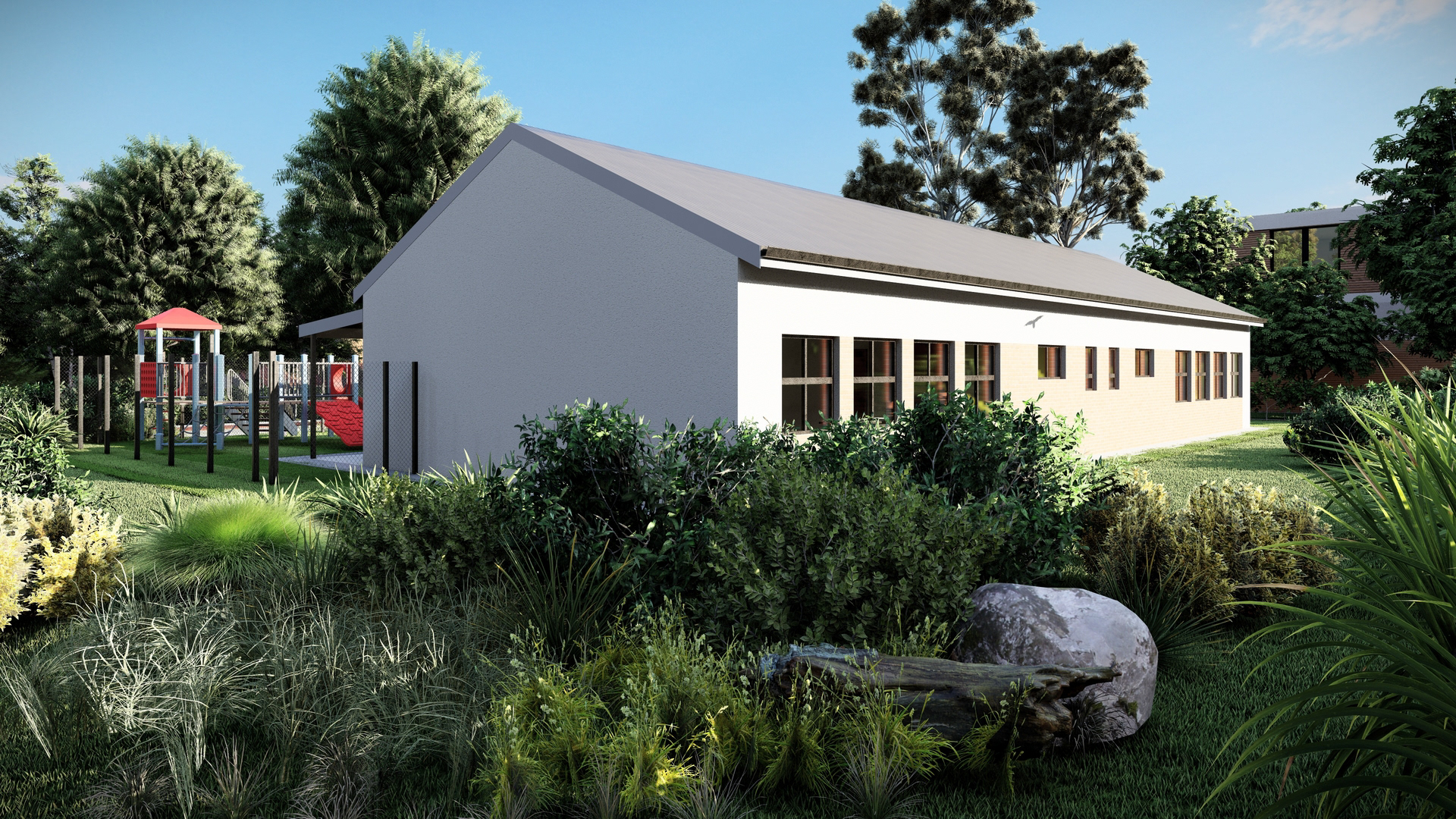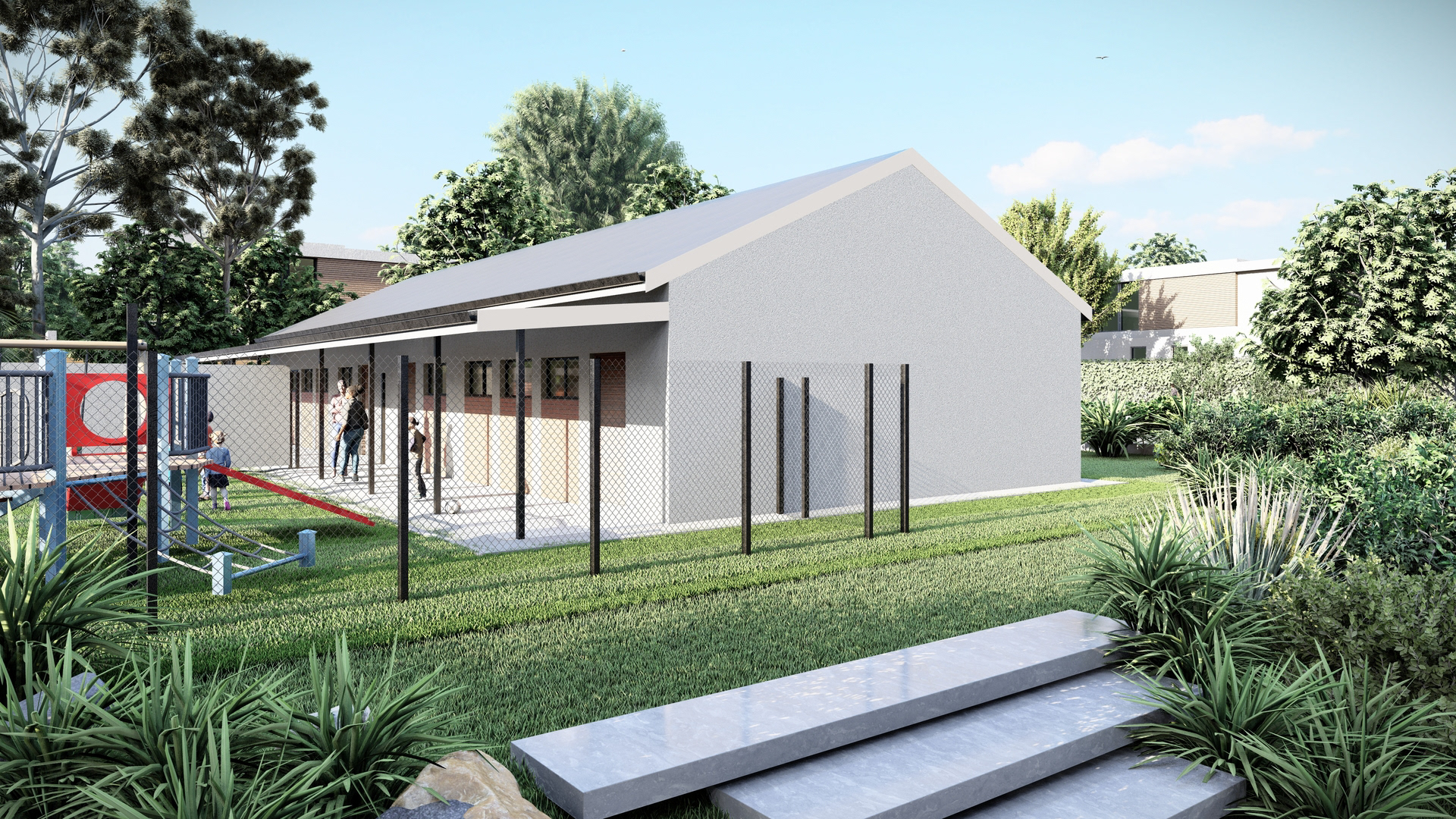 This minimalistic design of this school creates a space for focus and calmness, supporting children with diverse needs. The classrooms live out into spaces for play and interaction, designed meticulously for easy observation and monitoring by teachers.