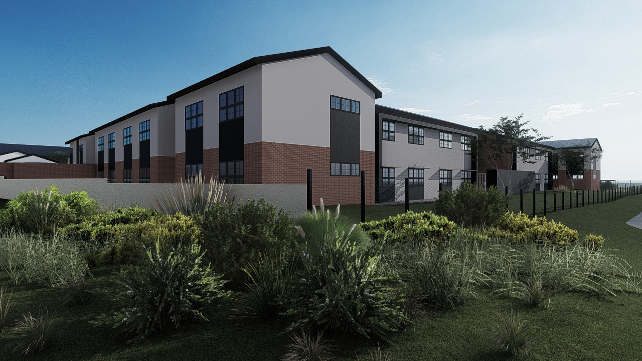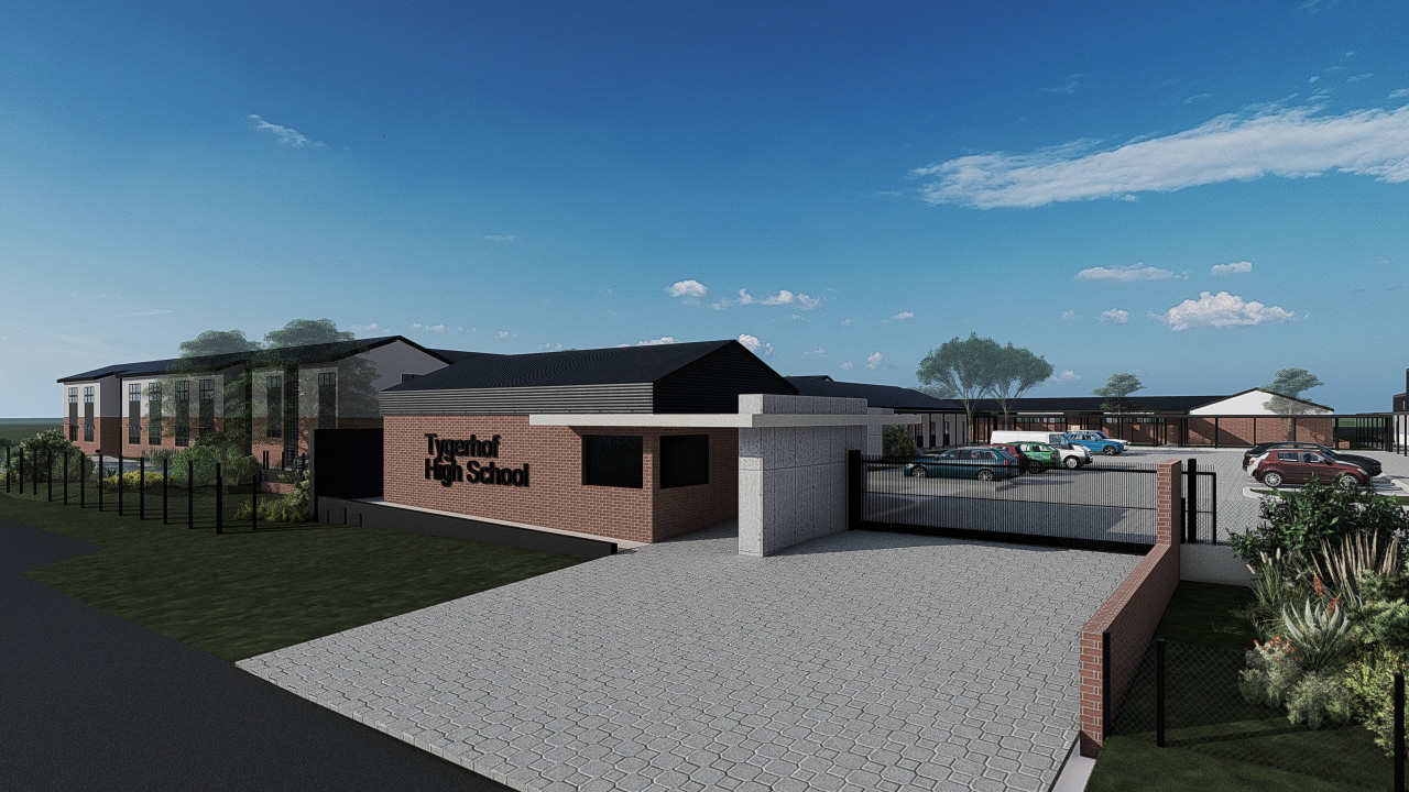 The new Tygerhof High School for the Western Cape Education Department in Cape Town is a contemporary single- and double-storey campus that combines crisp white and face-brick facades, organised around a series of landscaped courtyards and sports fields to create a vibrant, light-filled learning environment.